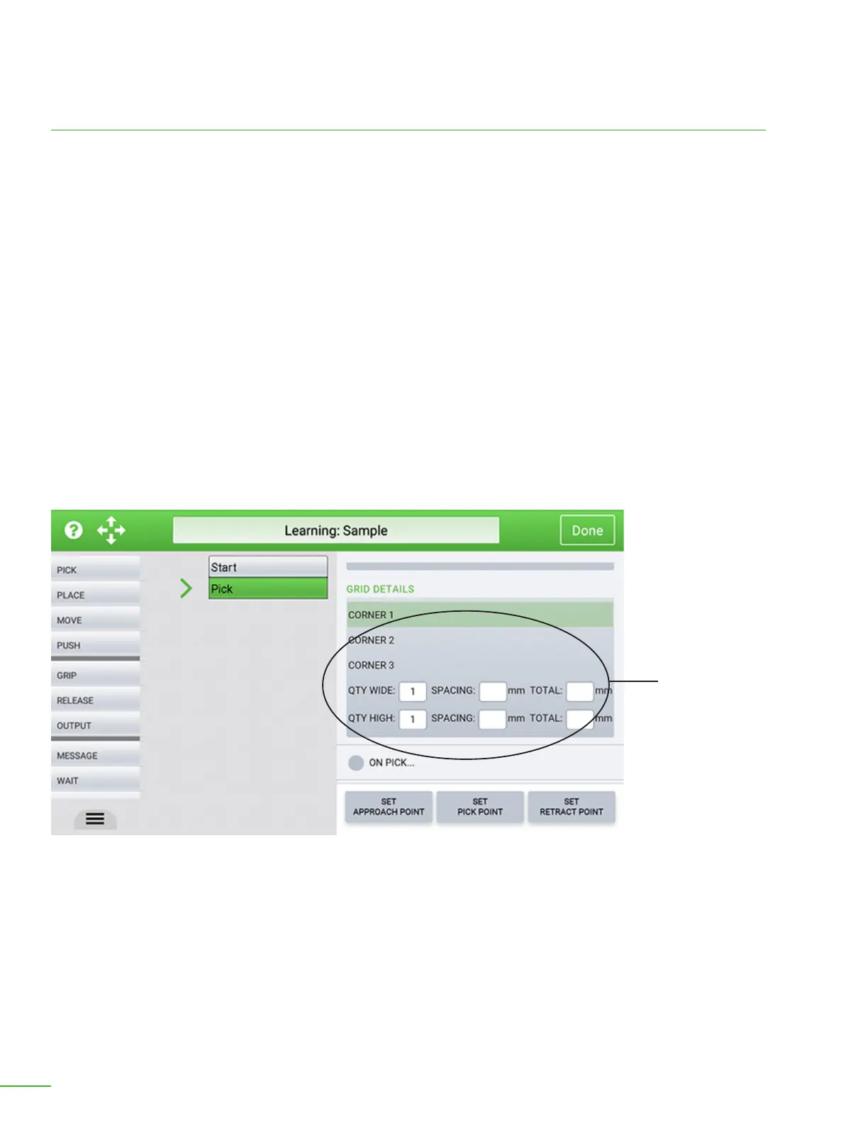 pick up each object in succession according the the grid spacing. Note that it is also possible to have