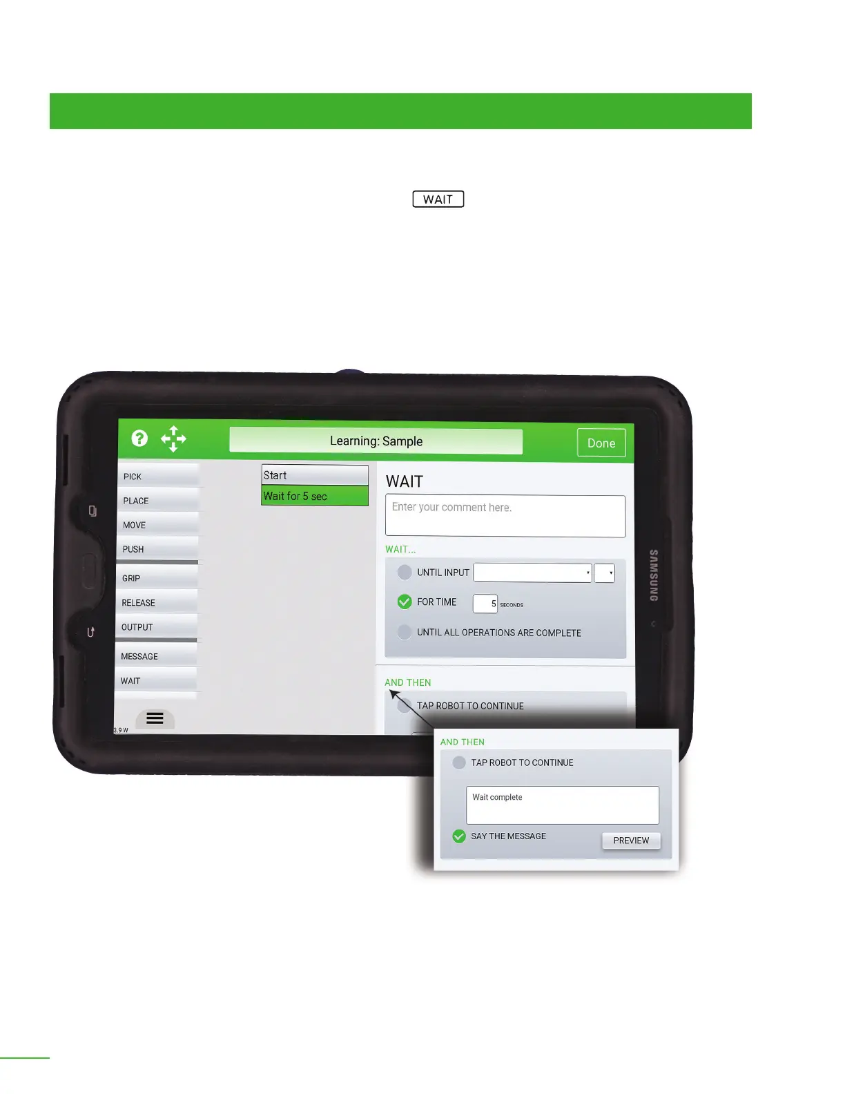 must wait for someone or something, you can add a Wait tile to the job. OB7 can wait for various