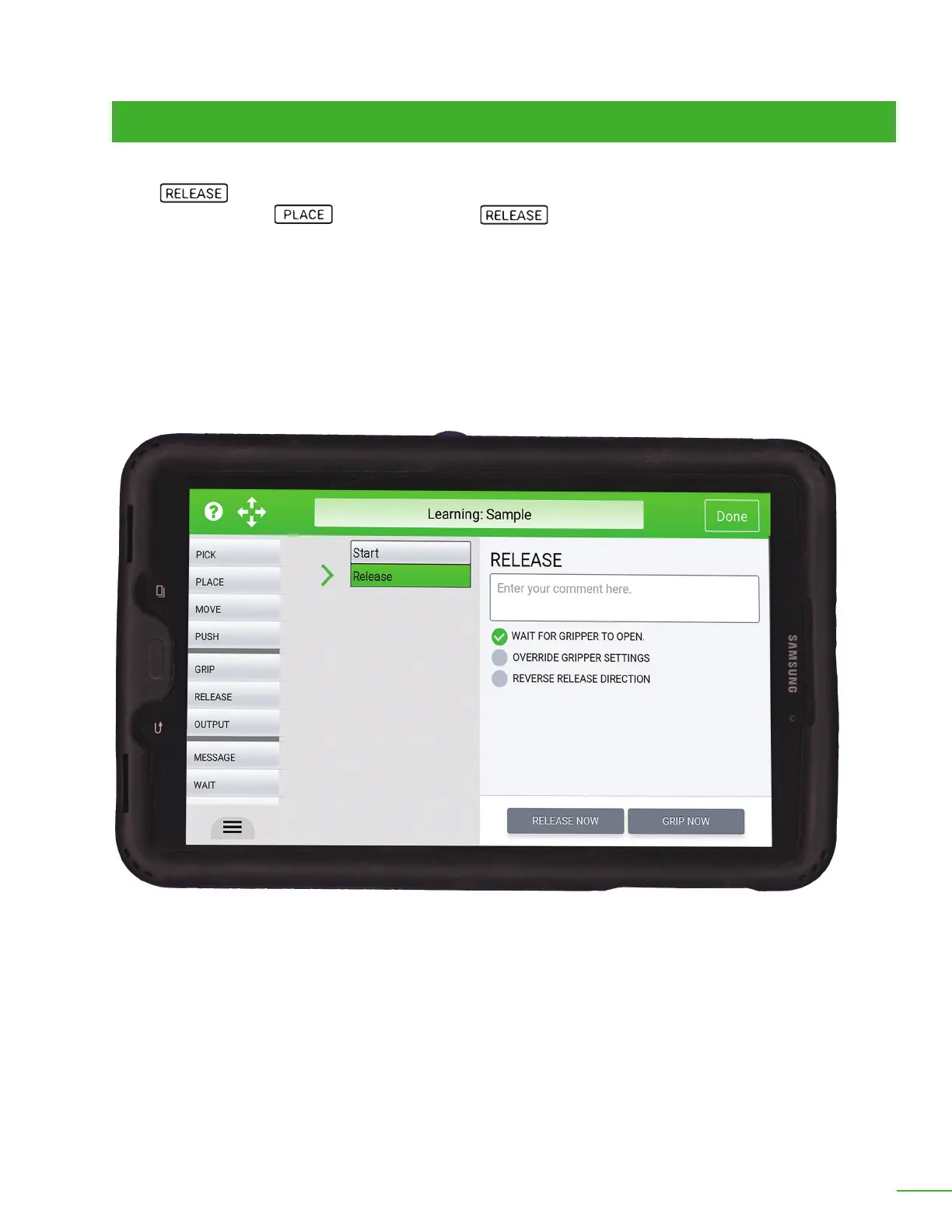 The RELEASE tile is used when it is desired to manually release an object without needing to place