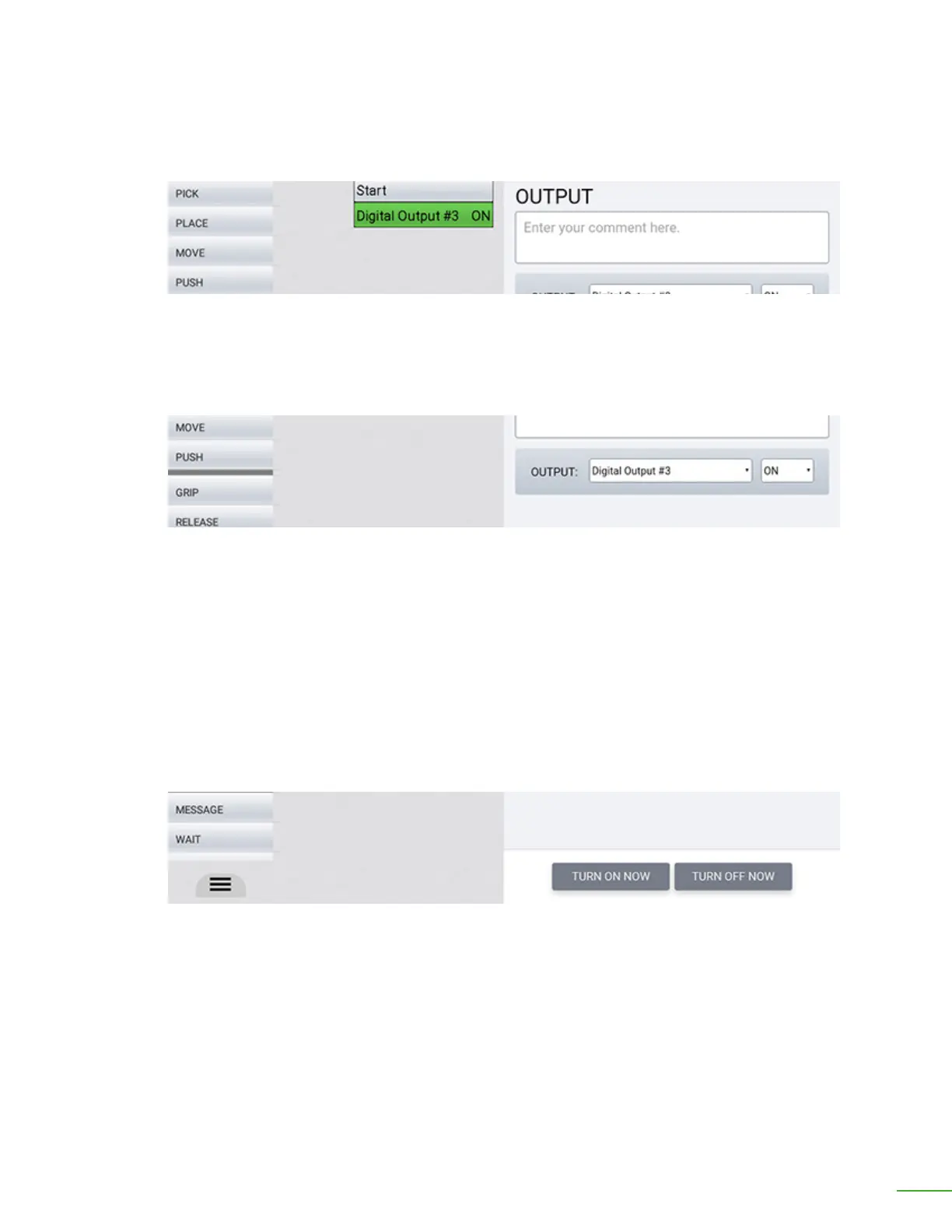 Output: Select the name of the signal and whether to turn it "on" or "o".