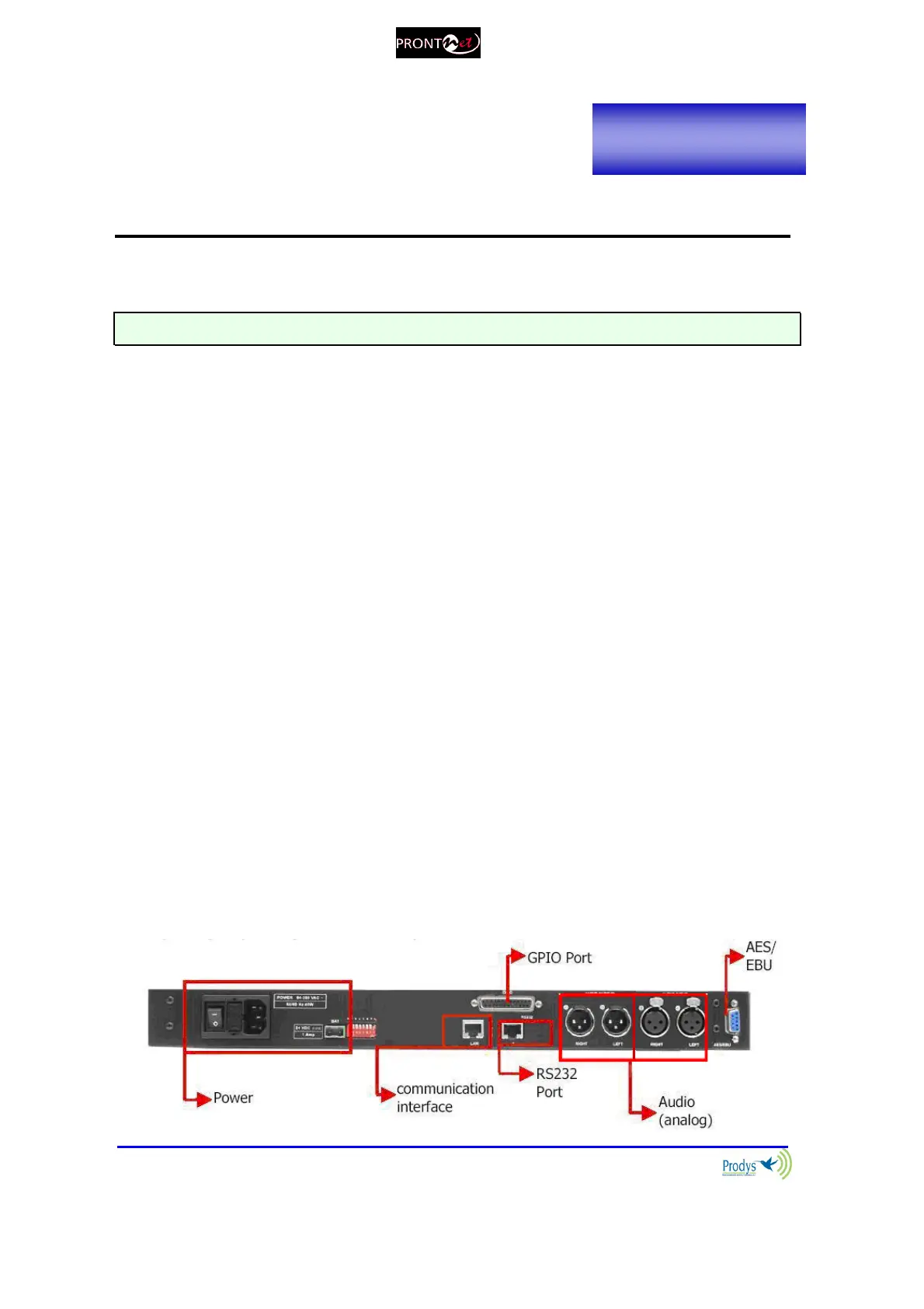 not work correctly, you should contact Prodys or its distributor as soon as