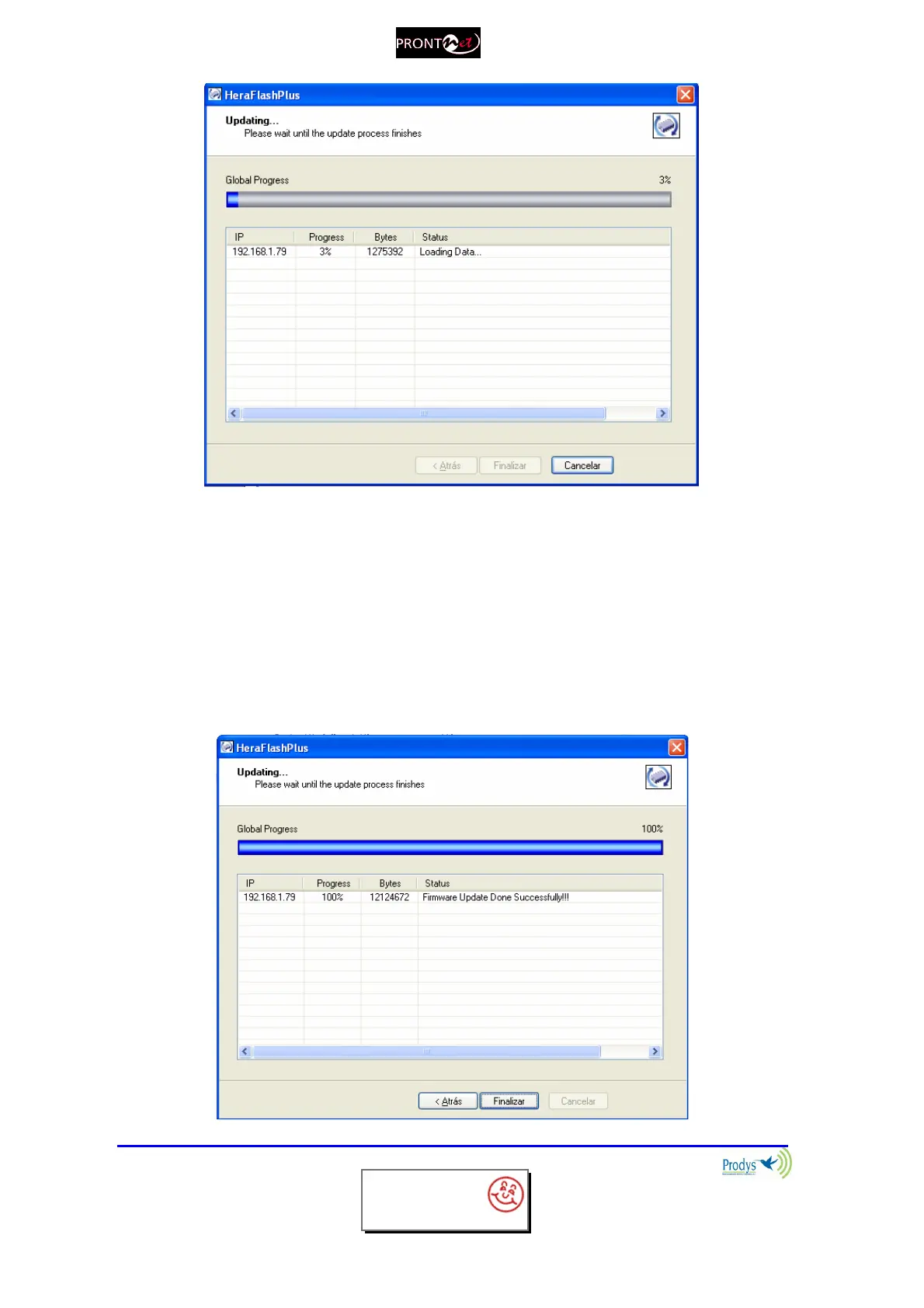 The update process will begin, the Flash will be erased and a progress bar