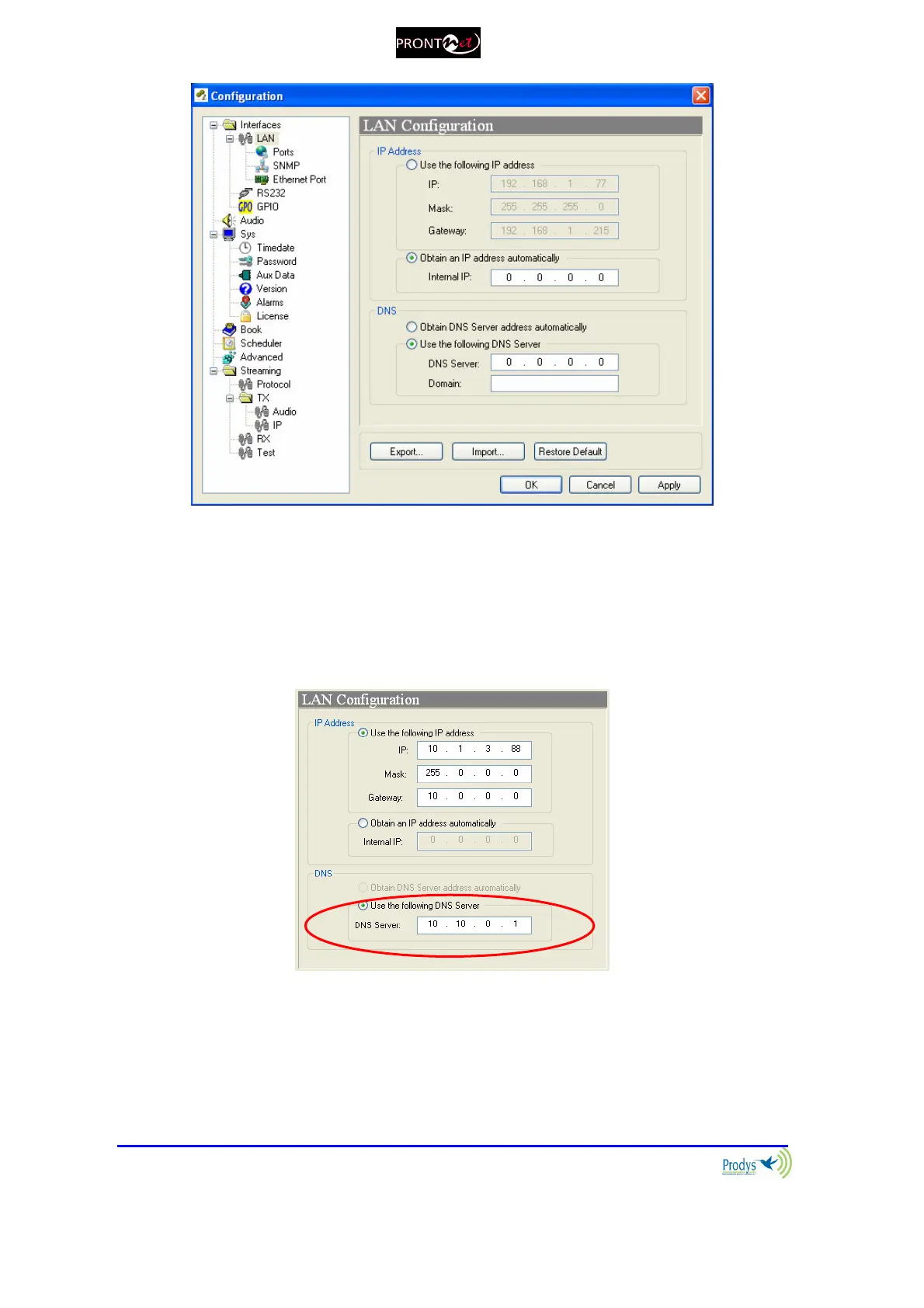 book, SNTP IP server address…This is the DNS configuration windows: