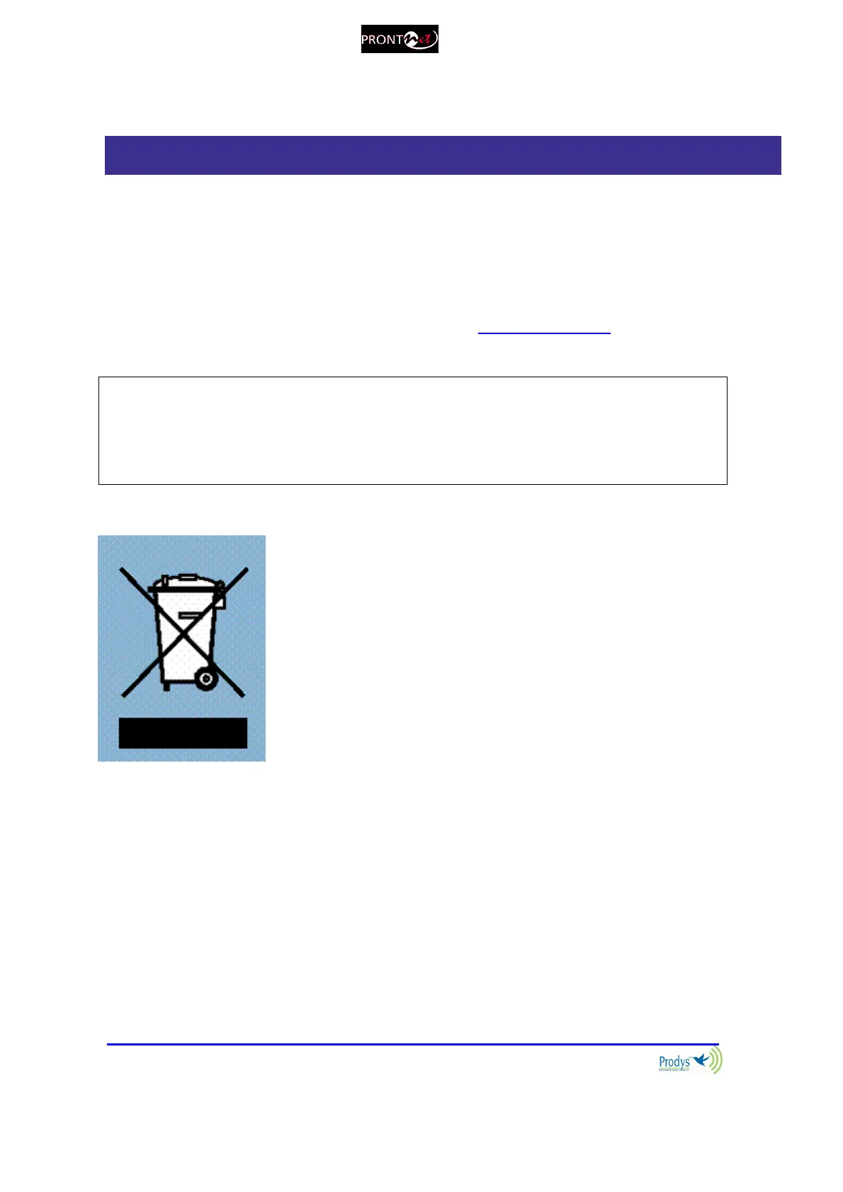 A “Declaration of conformity” for ProntoNetLC is available on file at Prodys offices
