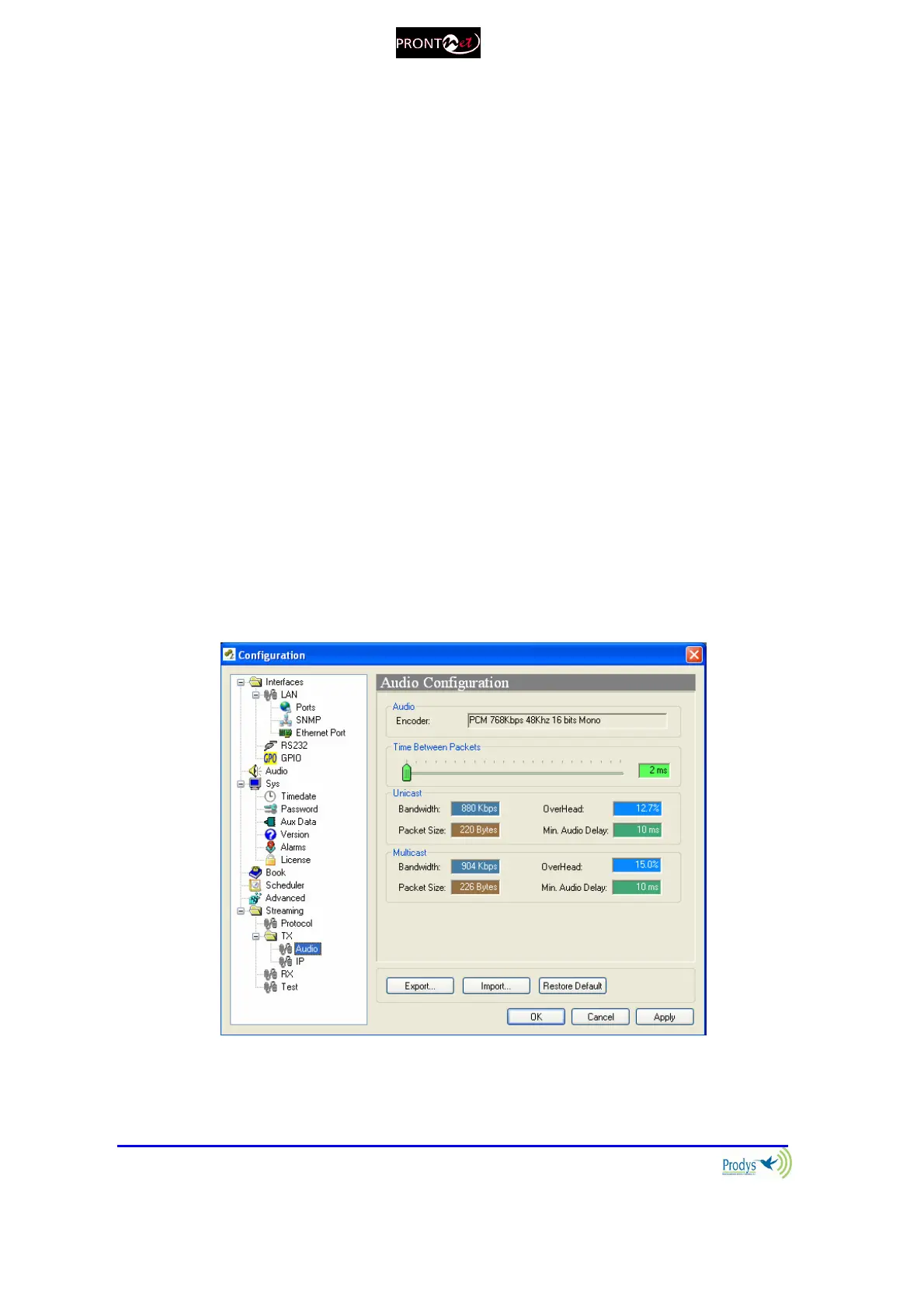 Audio: This option allows the user to configure the audio transmission