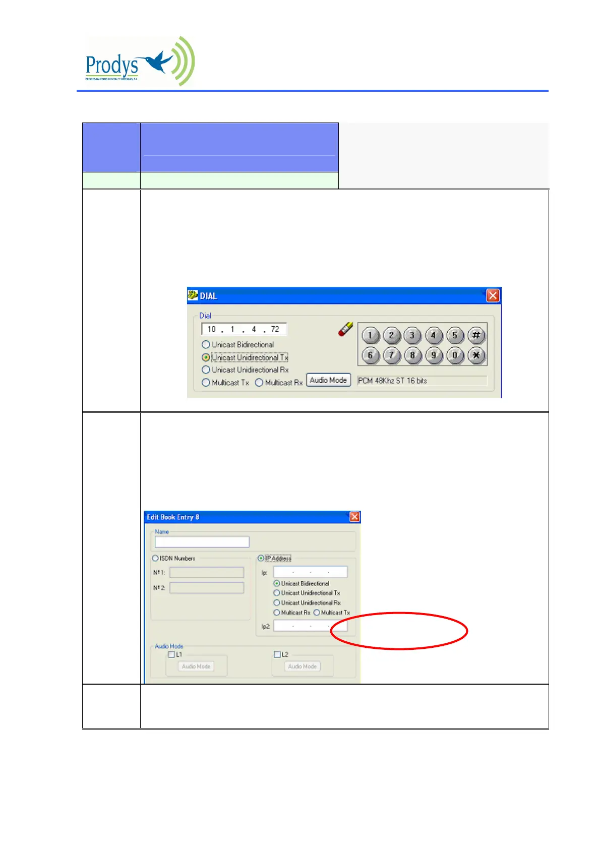 unidirectional IP communication by using the phone book.