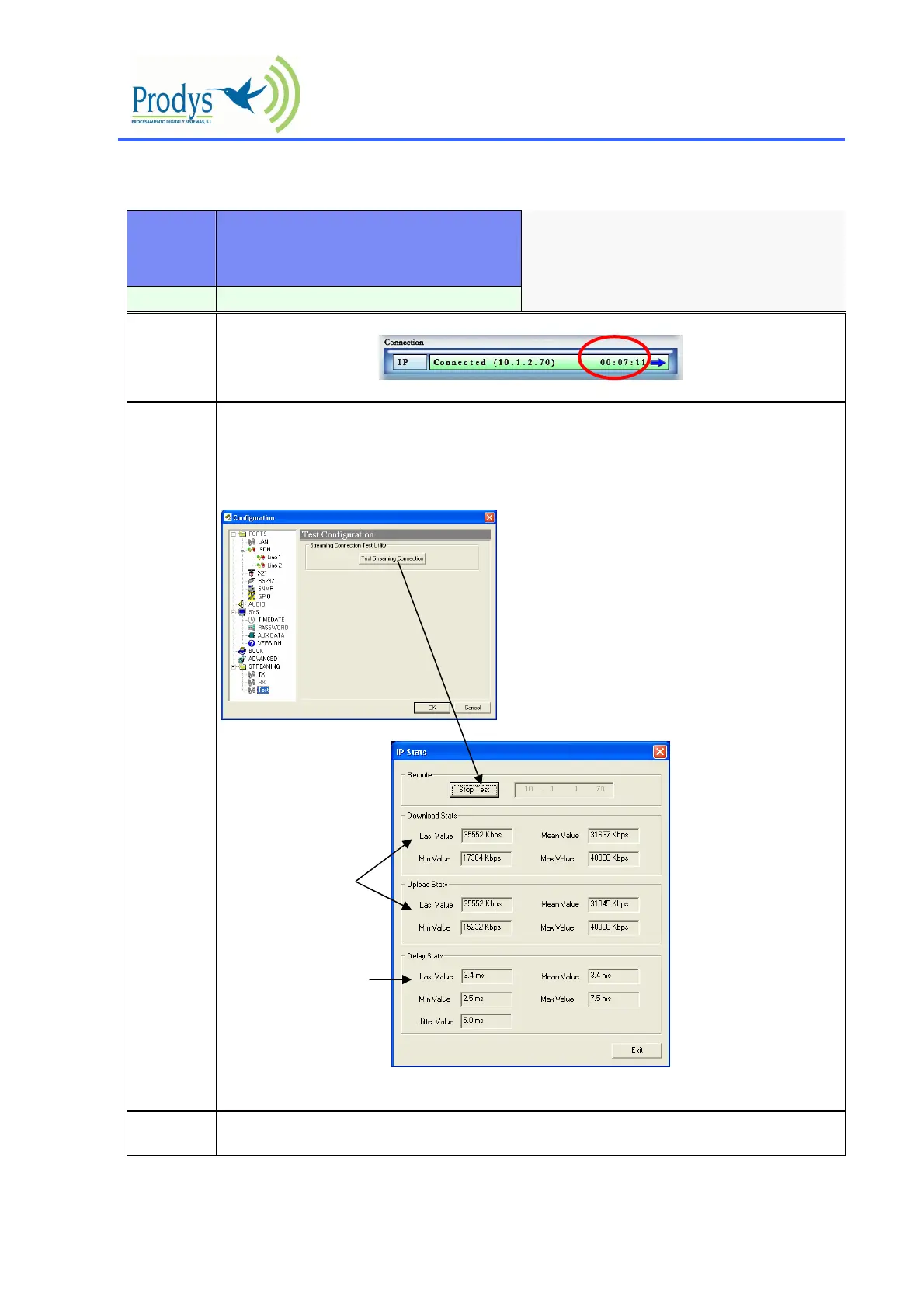This tool allows to check in real-time the bandwidth, delay and jitter of the IP connection