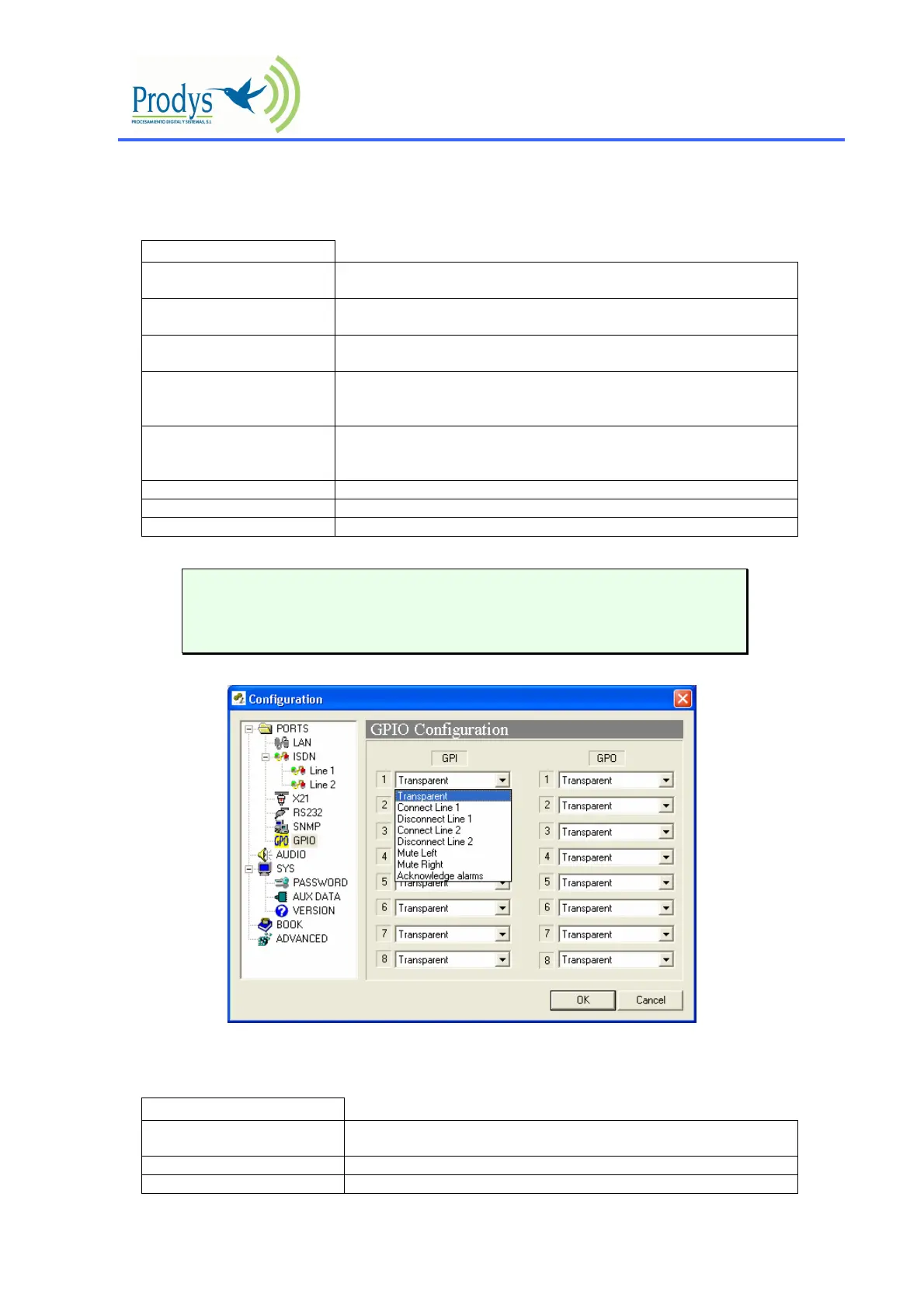 Connect Line 1 When this input is activated, the ProntoNet will proceed automatically to connect