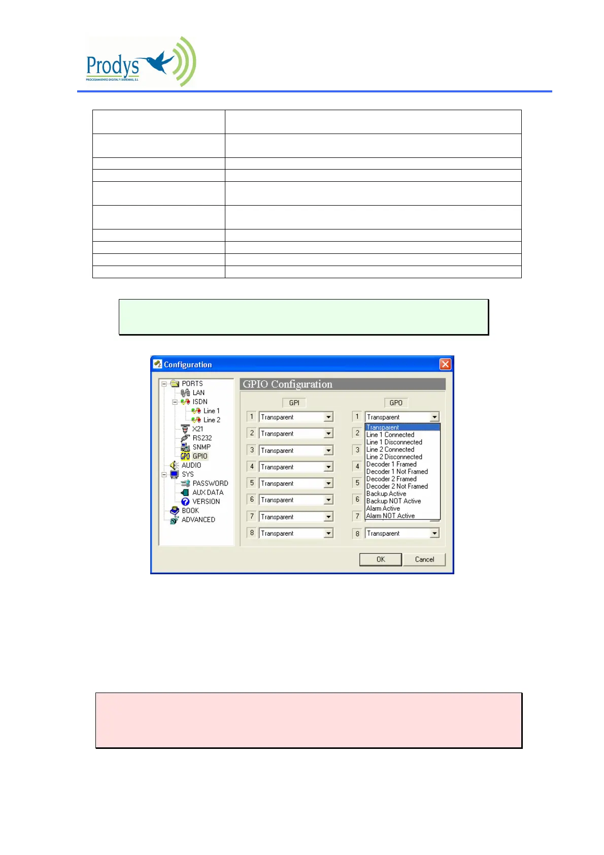 GPIO has been modified in ProntoNet with serial number 8938/00250 or higher.