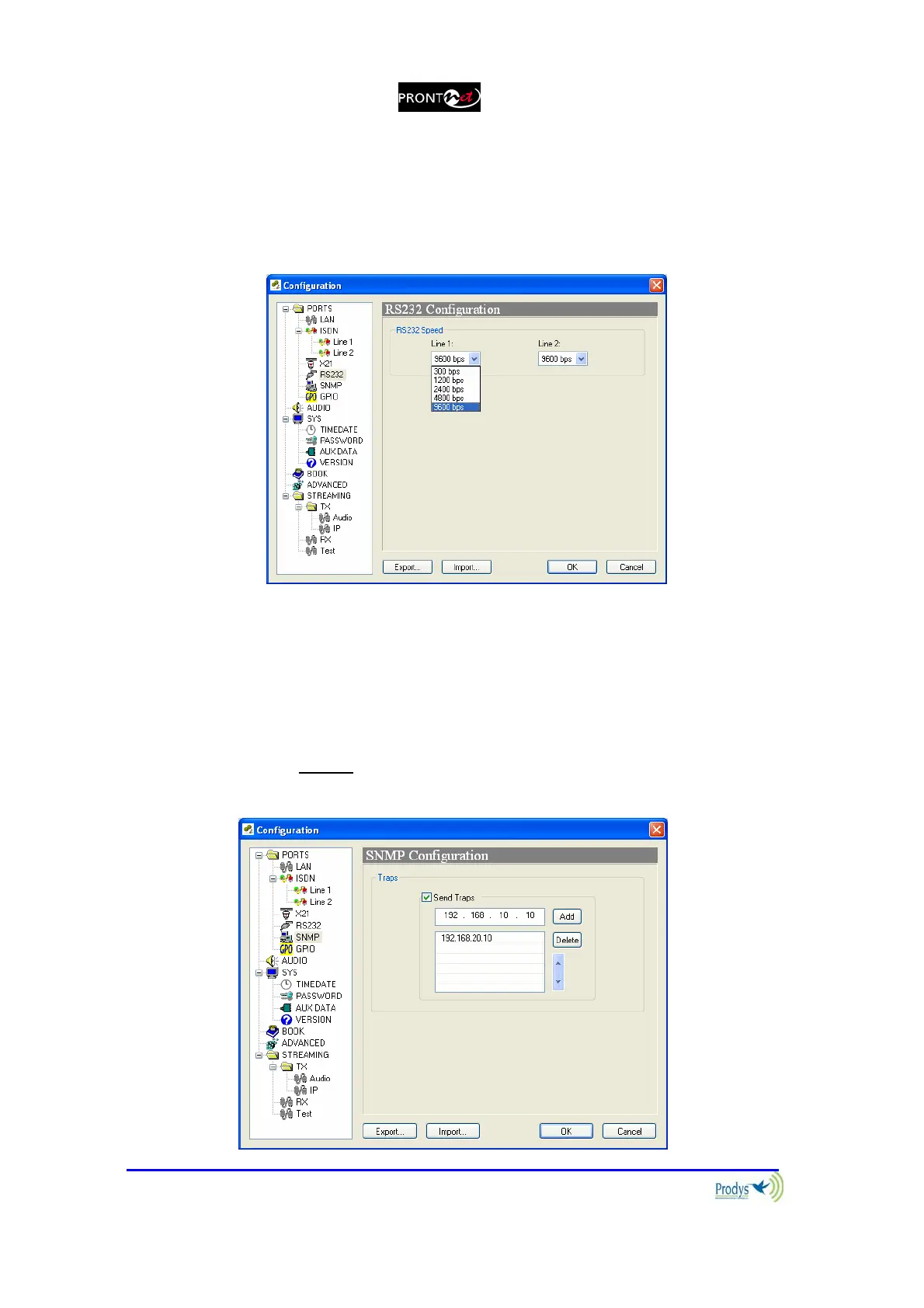 There are two RS232 ports for use as auxiliary data ports. These ports allow the
