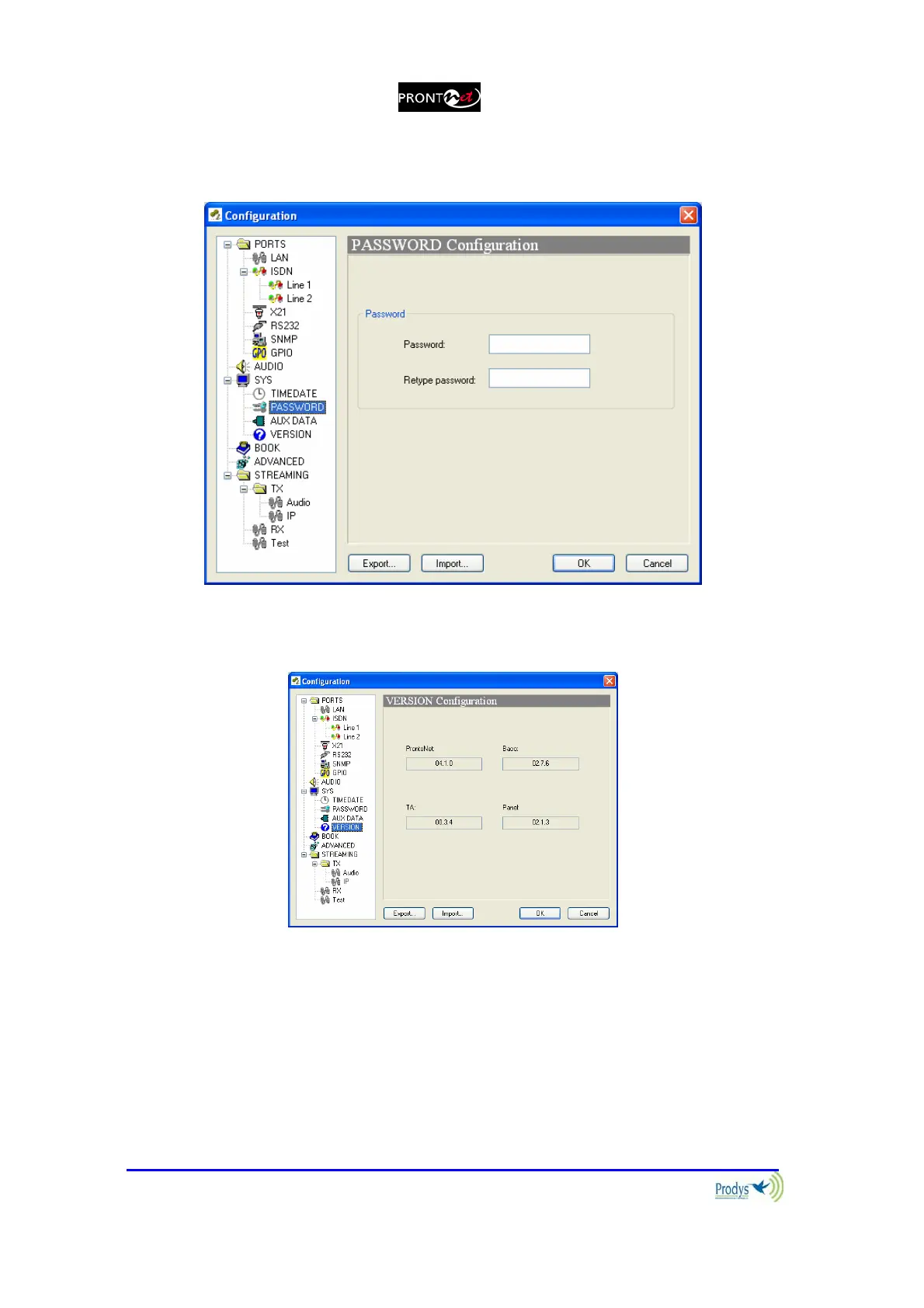 only available when ProntoNet is configured as a DUAL Codec,