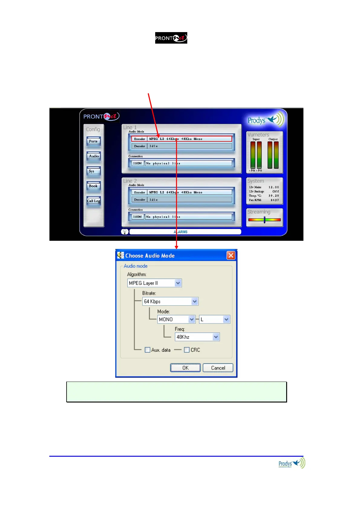 The Audio Mode area shows the Encoder / Decoder current status and also, it