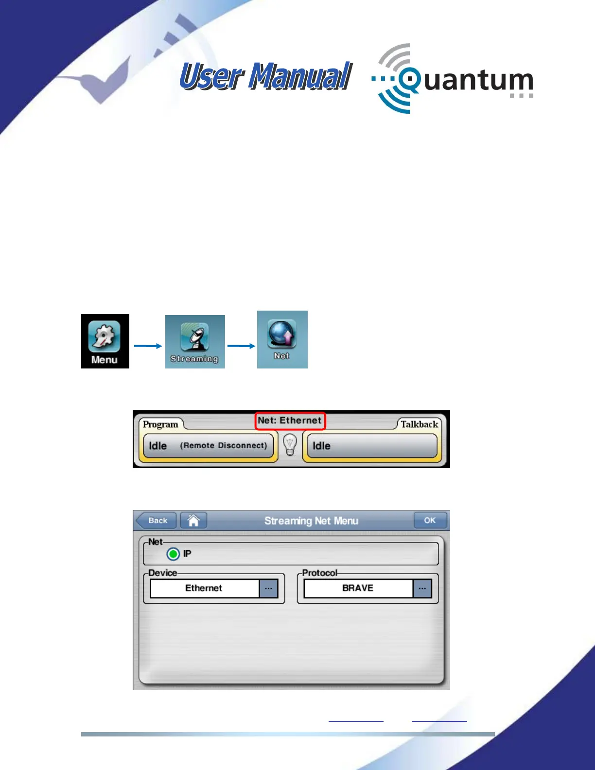 In the Streaming Net Menu, check the desired interface: