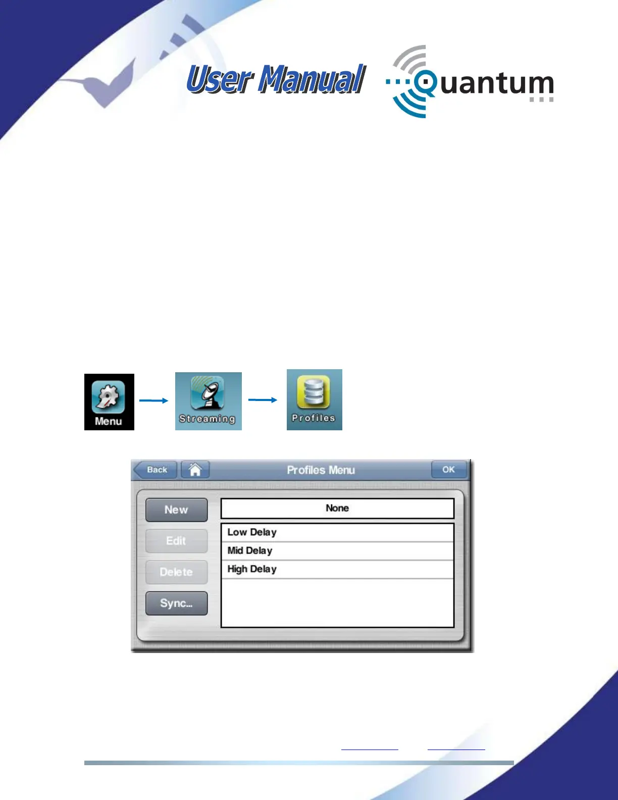 To enter the Profiles menu just click on the Profiles button at the main streaming