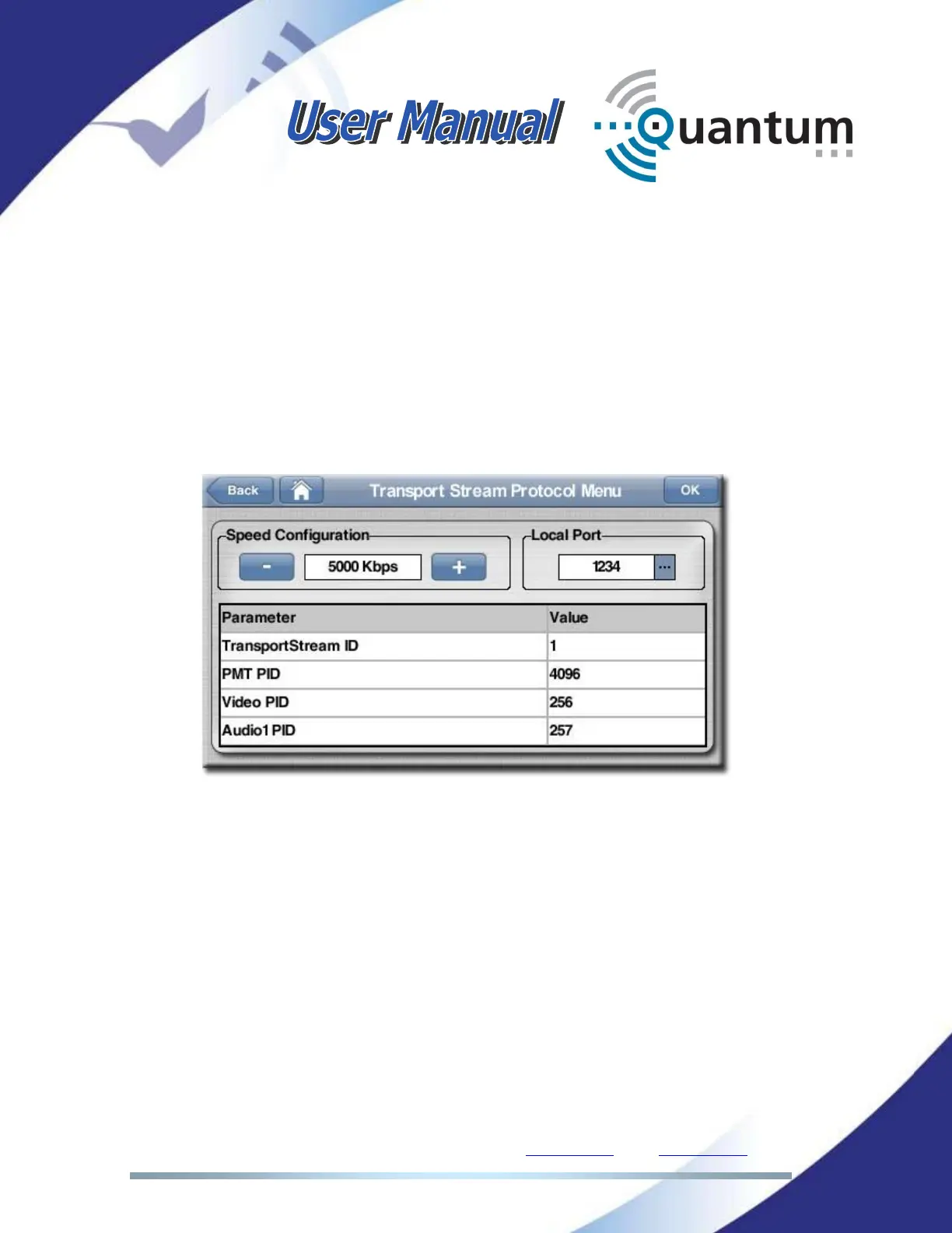 Prodys Quantum ST - IV.2.1.7. Streaming Protocol Selection (MPEG-TS); IV.2.1.8. Streaming TX Parameters (BRAVE)