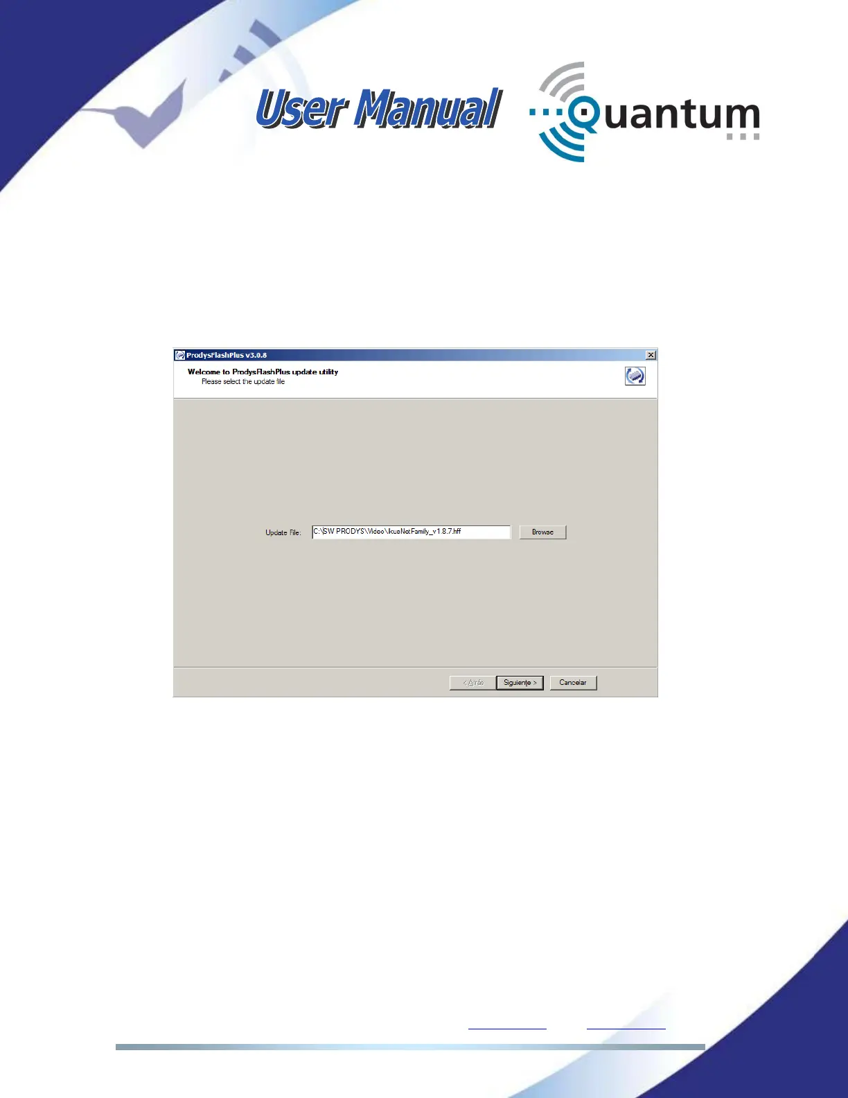 6. Click on browse and select the file with the new firmware version.