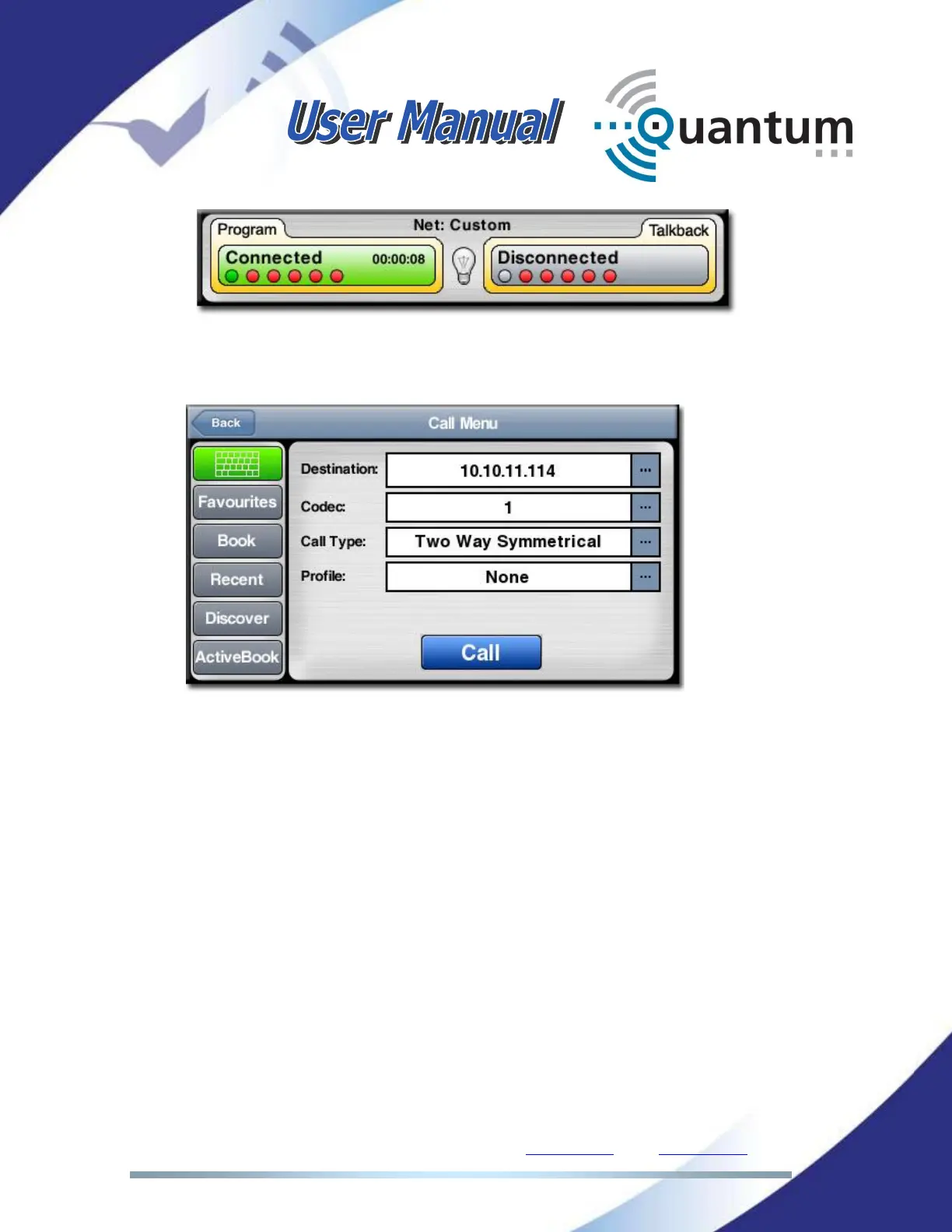Tx One Way: Transmission call. The connection profile sets the local