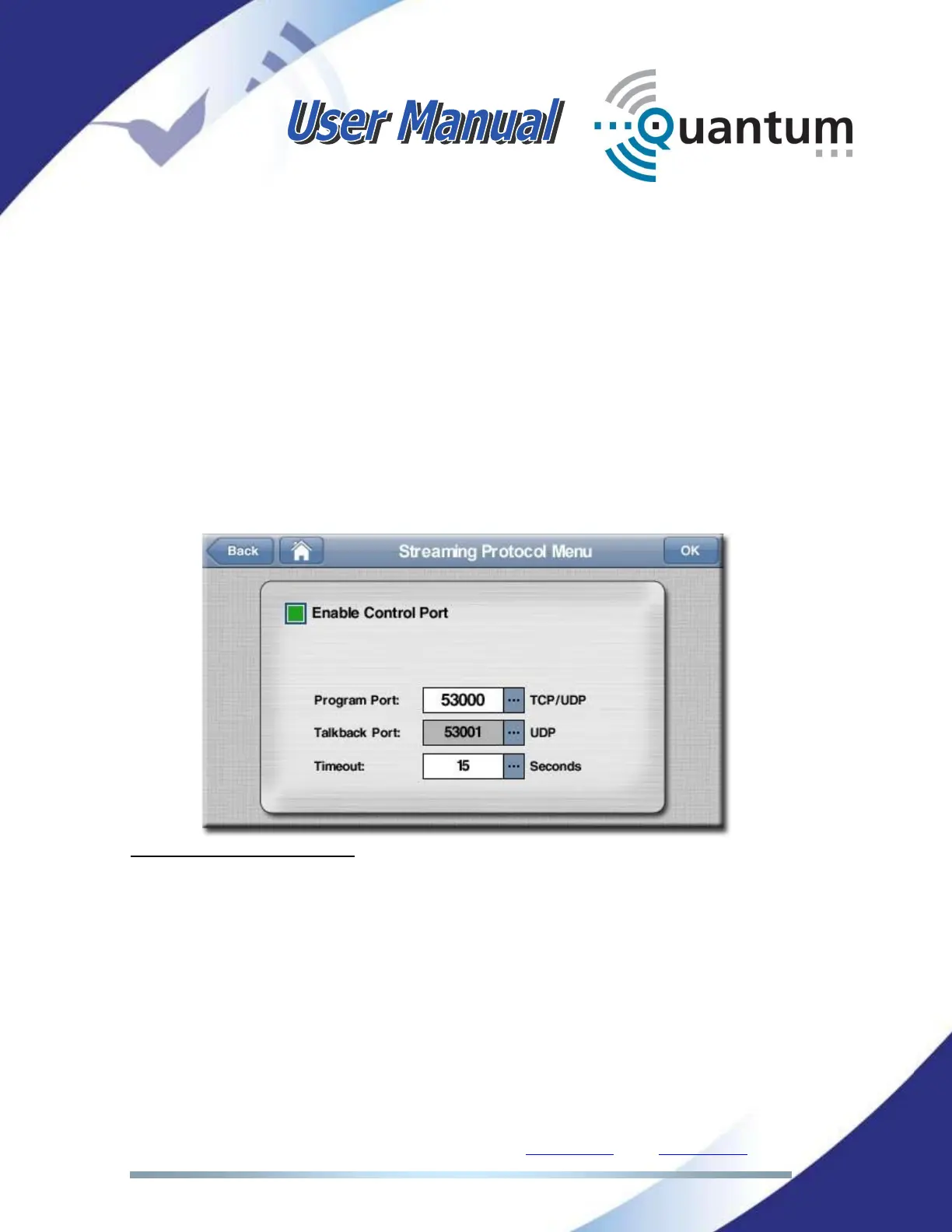 Disabling the <Control Port>, means disabling the TCP protocol. Therefore any streaming