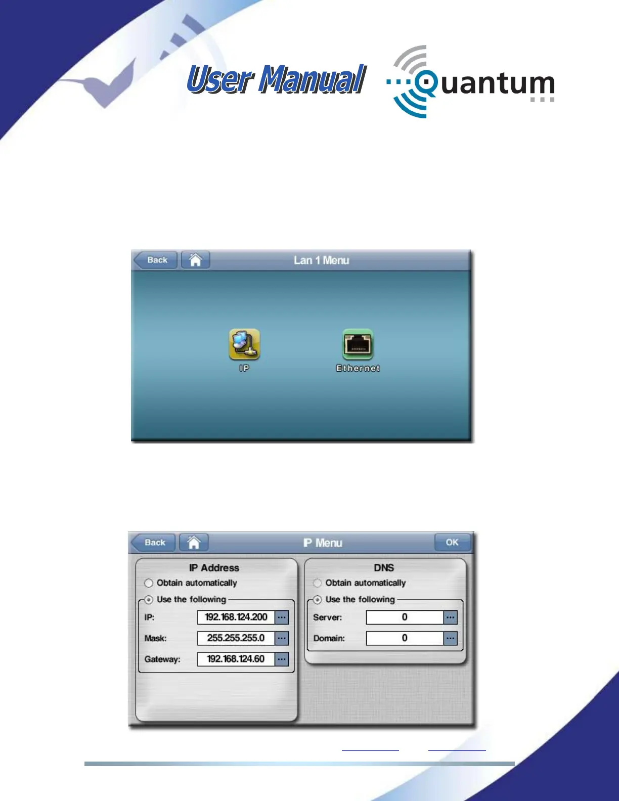 IP address, IP mask, IP gateway, DNS and DHCP.