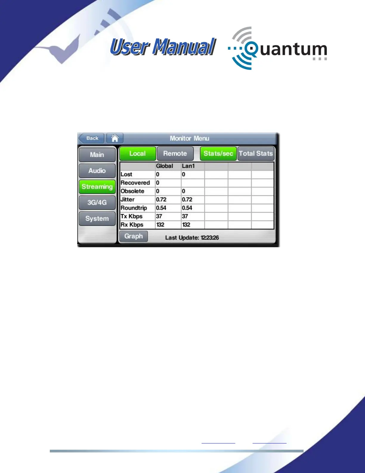 The <Local> field indicates the performance of the incoming stream, while the