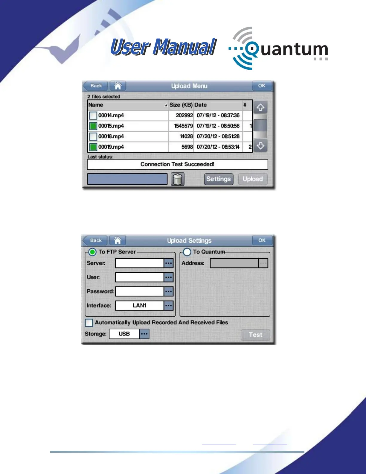 an FTP server or to the internal storage of a remote Quantum. This can be