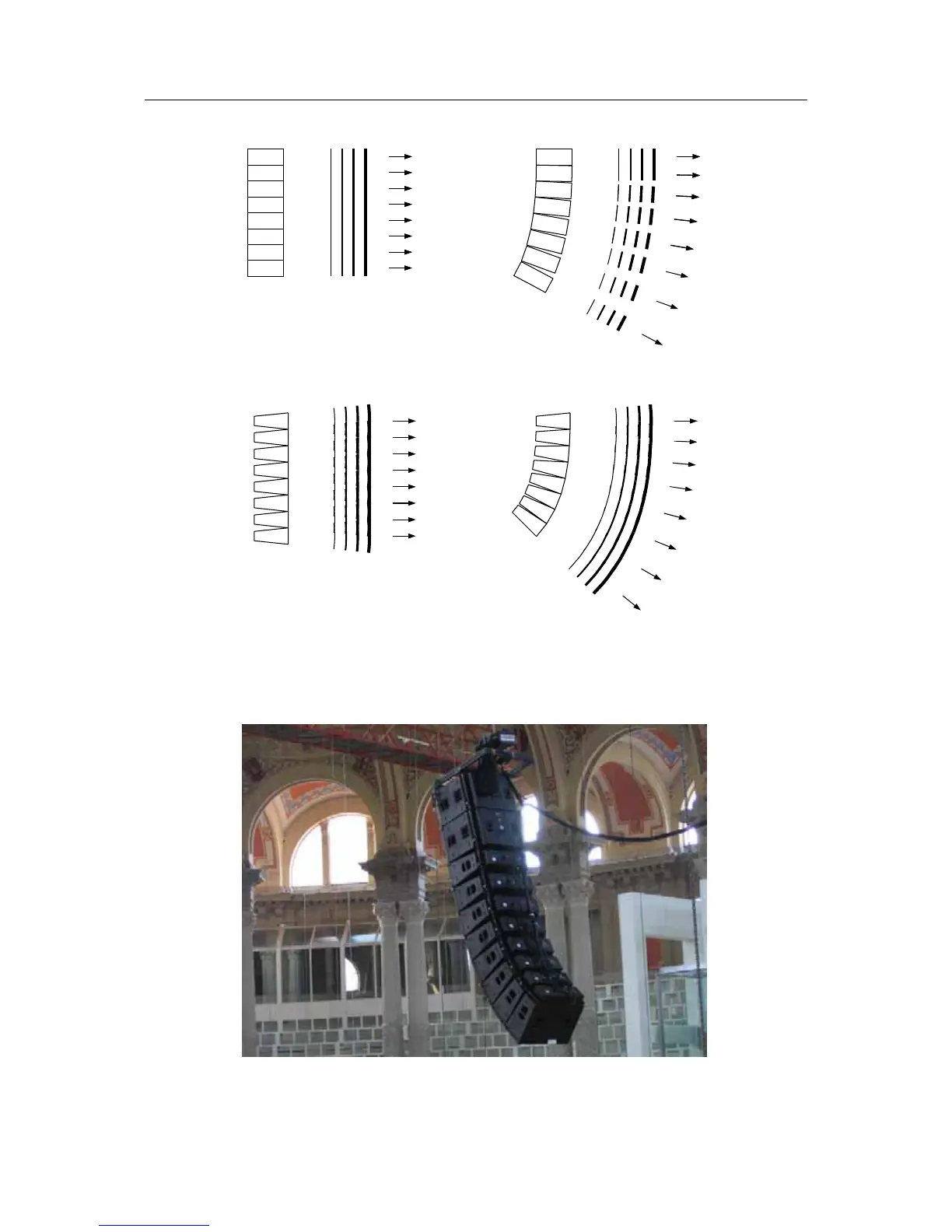 diation sound system on cur vilinear array, (c) curvilinear radiation sound system on straight array, (d)