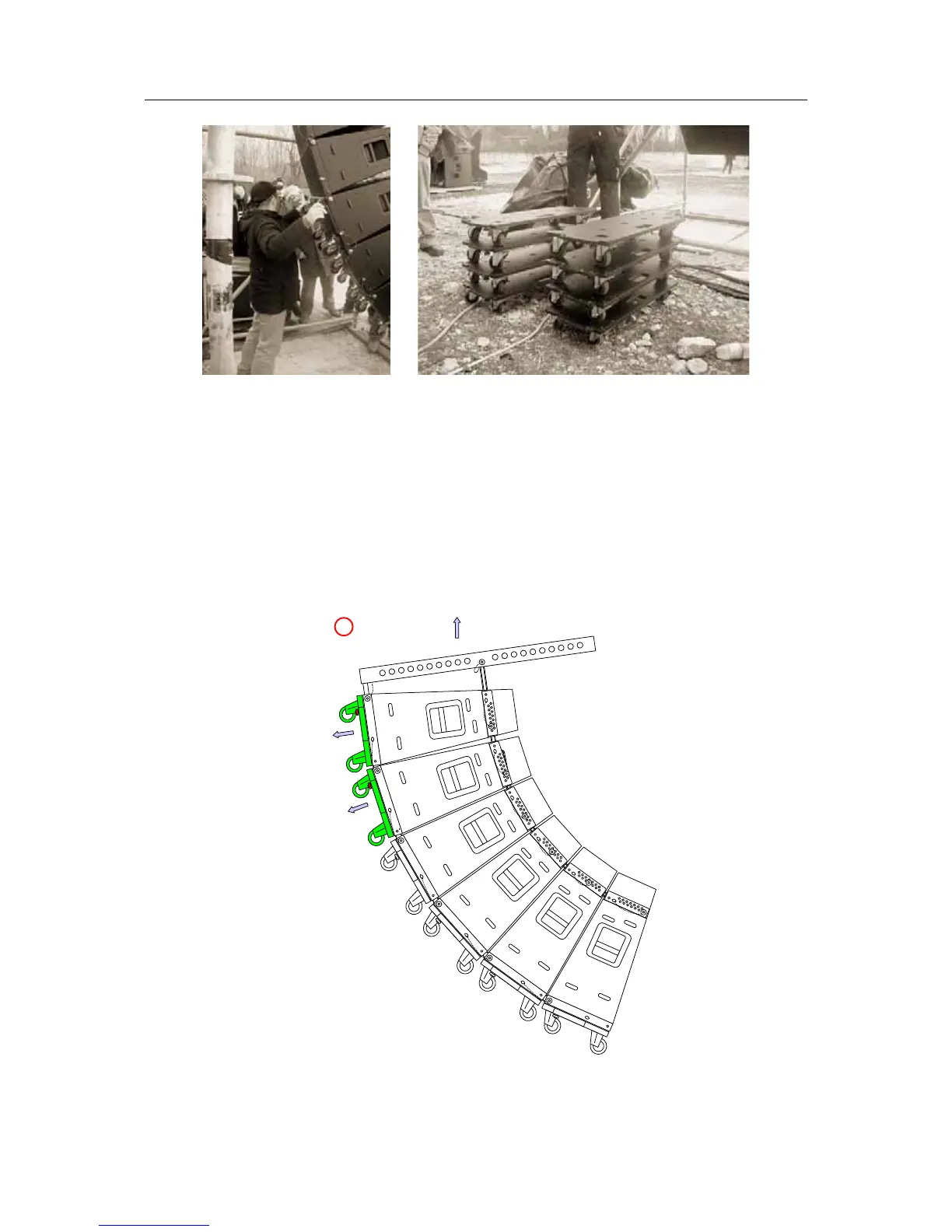 In this phase the array has to be eased in its natural movement by holding the handles on the last