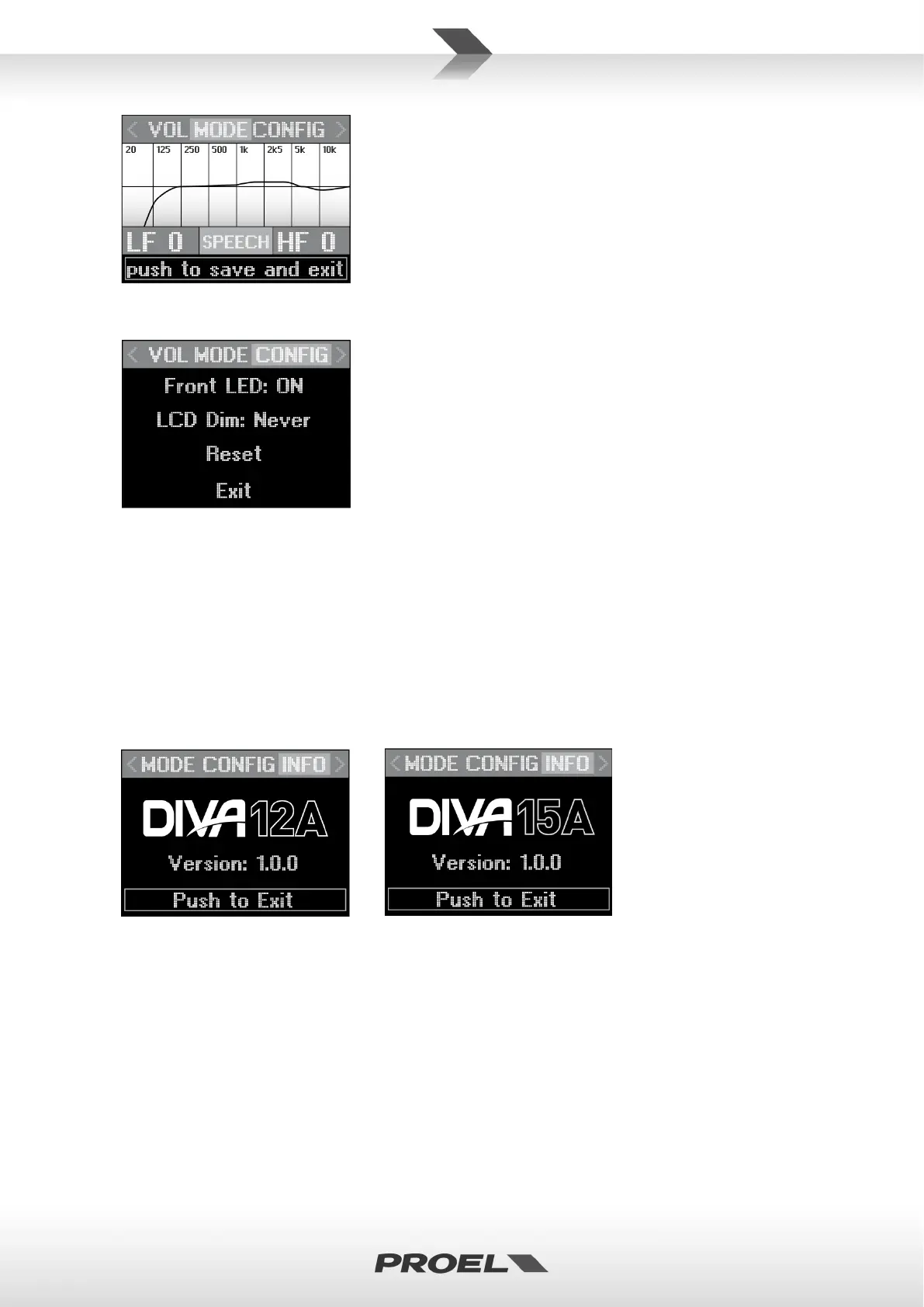 Exit: premere per uscire dal menu CONFIG.