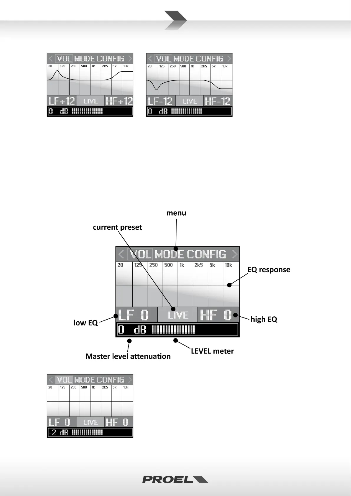 NOTE: the figures above show the EQ curves at minimum and maximum of their ranges that is +/-12dB.