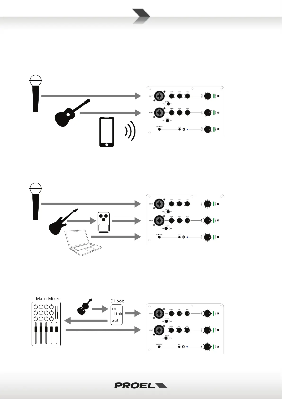 Vocal mike, acoustic guitar and tablet or smartphone via bluetooth.