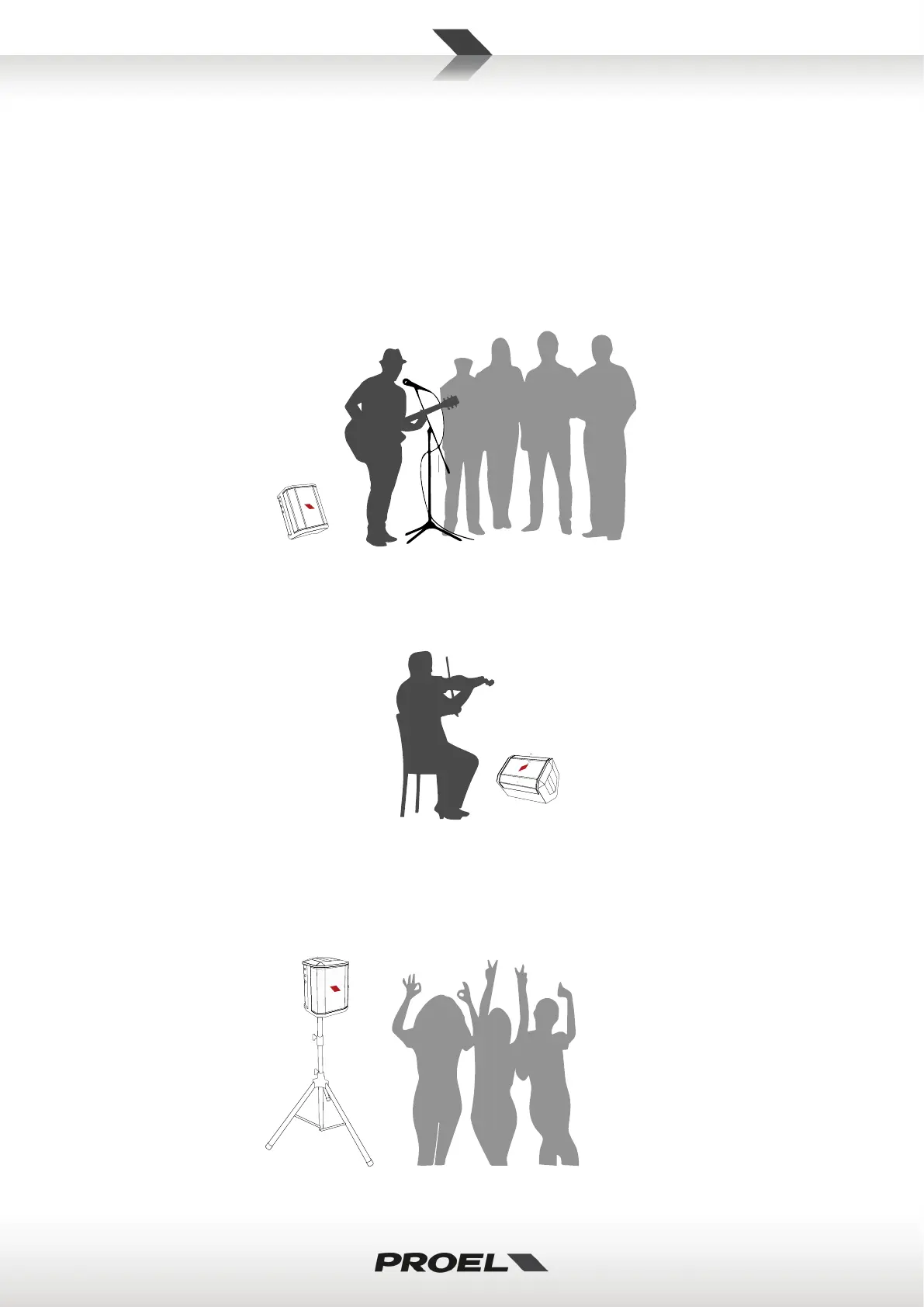 For performances where your audience is close to you, tilt the FREEONEX onto its back edge and stand or sit