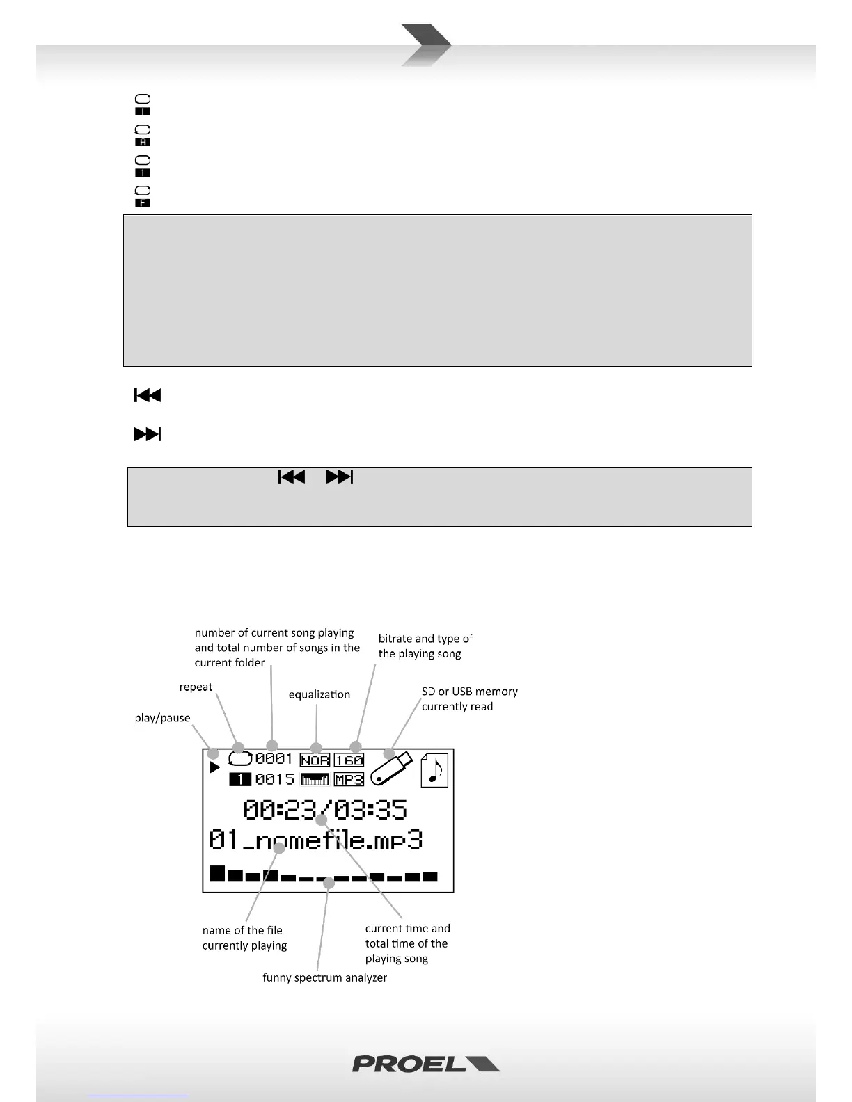 can be played (files with .WAV .MP3 .WMA extensions). All files will be played in numerical and