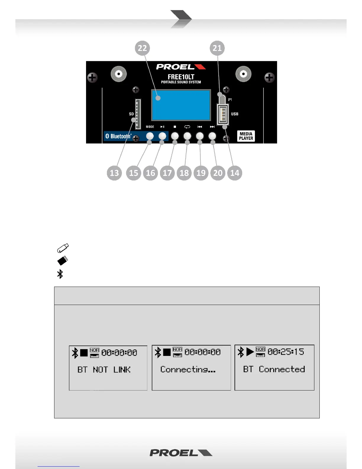 Premere MODE… Premere PLAY per connettersi … dispositivo BT connesso.