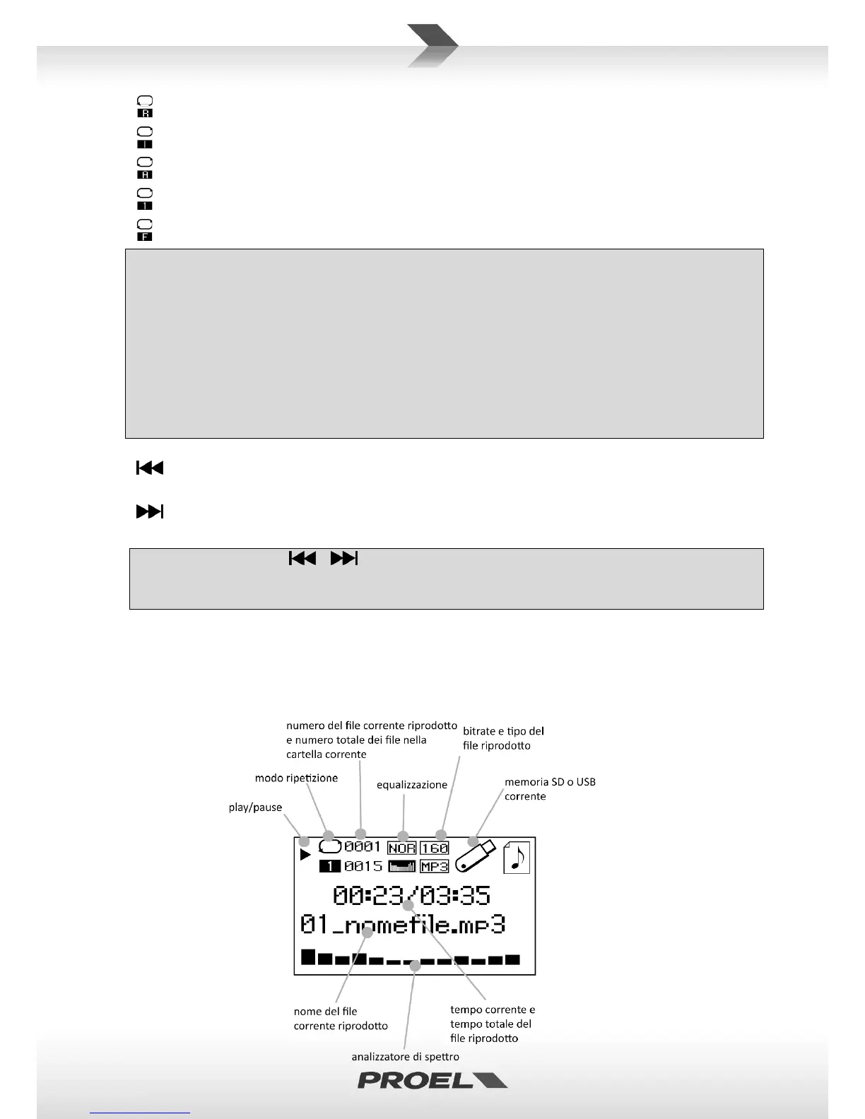 FOLDER: riproduce tutti i file audio contenuti nella cartella corrente.