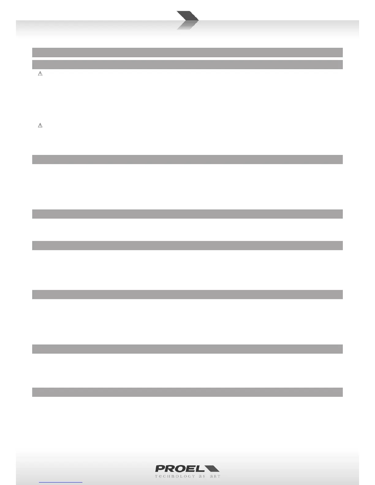 • Proel S.p.A. declines any liability for damages to objects or persons caused by lacks of maintenance, improper use, installaon not performed