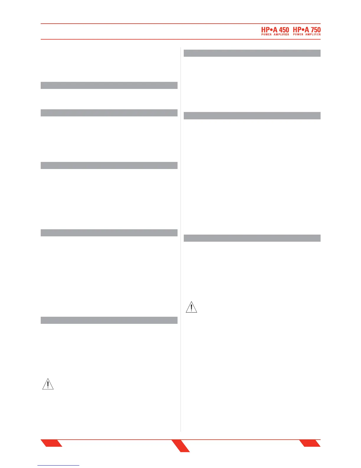 • These ampli ers are adapted in a properly ventilated, standard professional 19" rack. These units