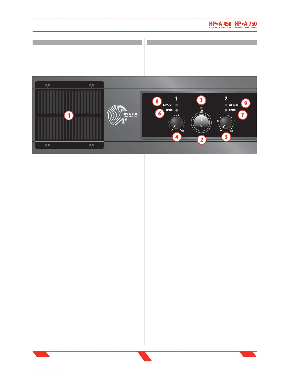 Red LED illuminates when the channel's output is distorted (Clip) or