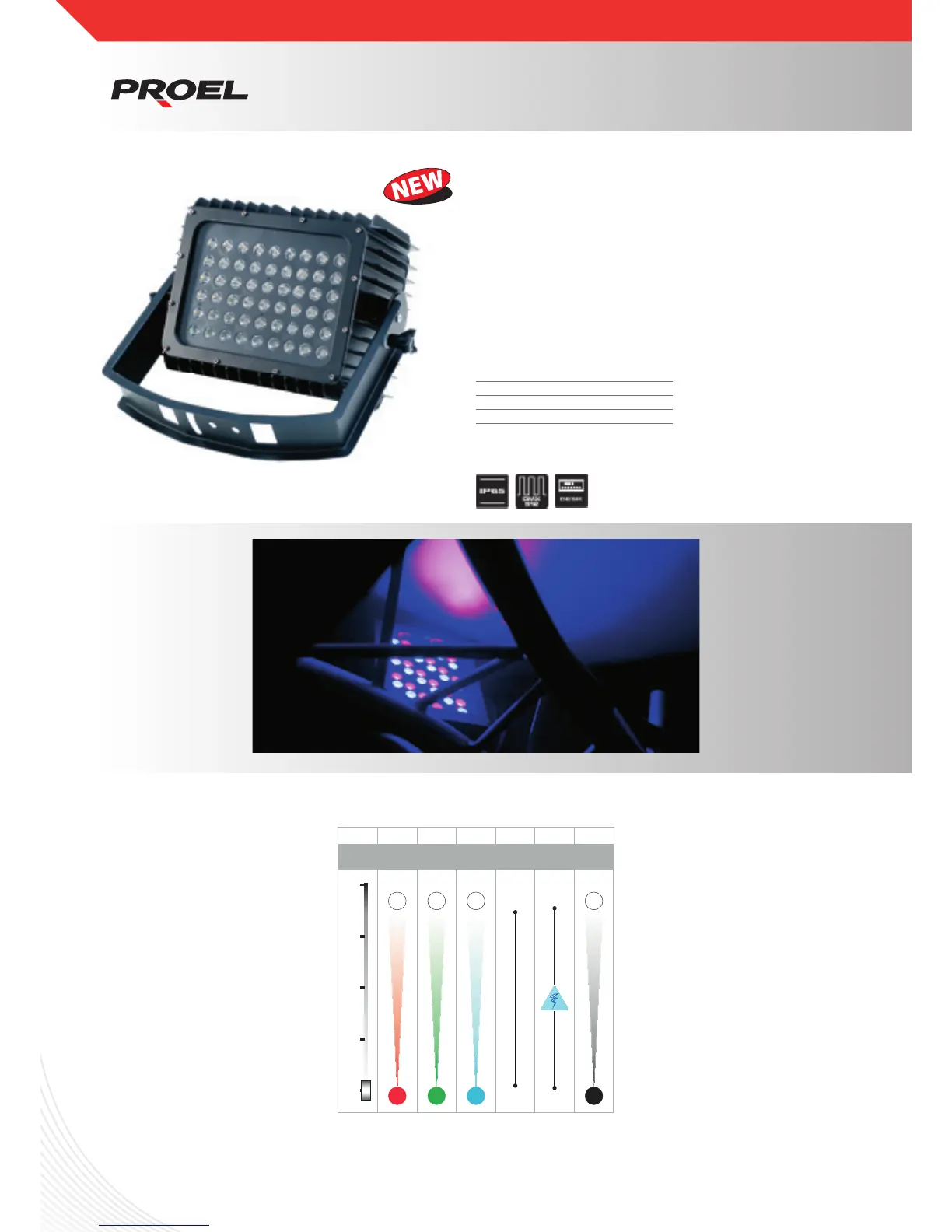LED: 54 x 1W RGB LED (18R – 18G – 18B)