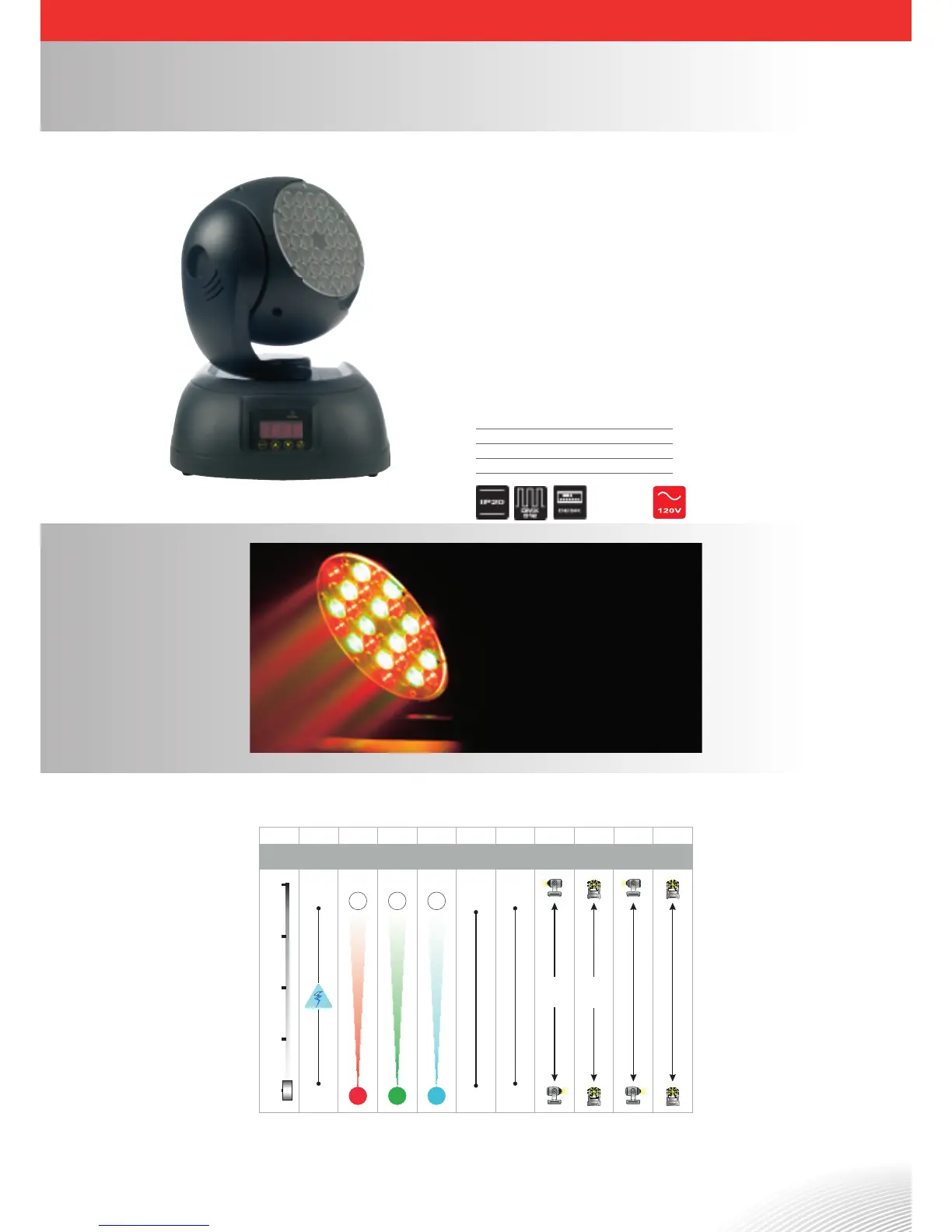 LED moving head with RGB technology. This projector provides illumination via 36