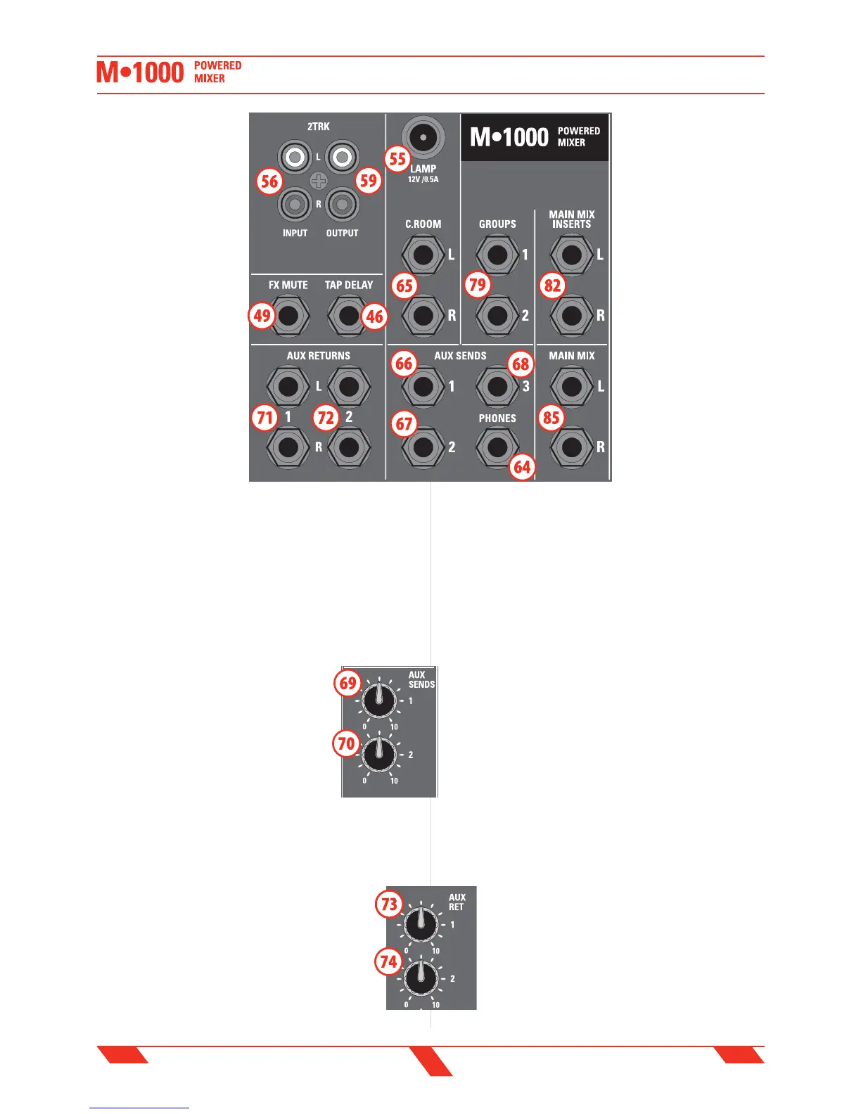 71. AUX 1 RET jack inputs