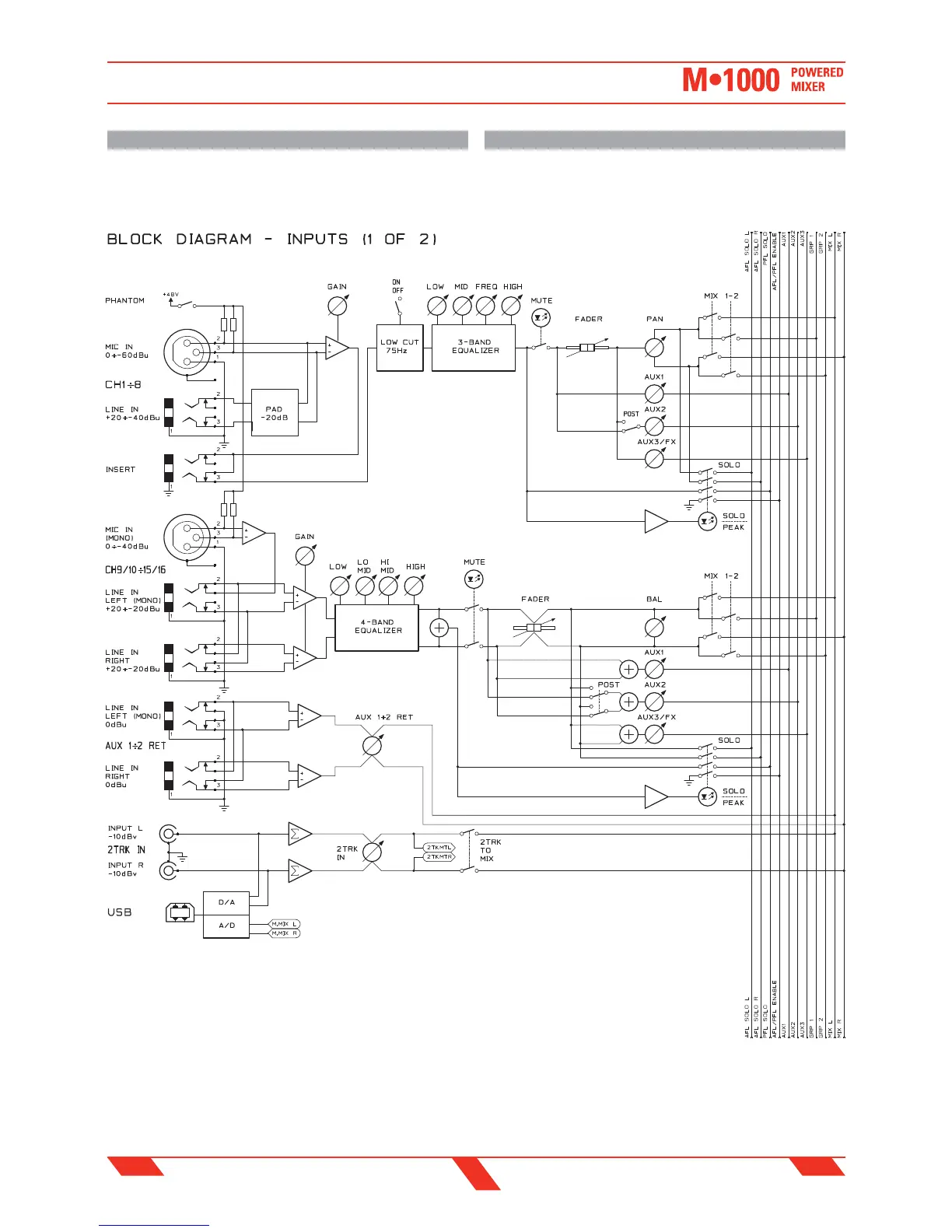 PROEL M-1000 - Block Diagram (Inputs Part 1 of 2); Diagramma a Blocchi (Ingressi Parte 1 DI 2)