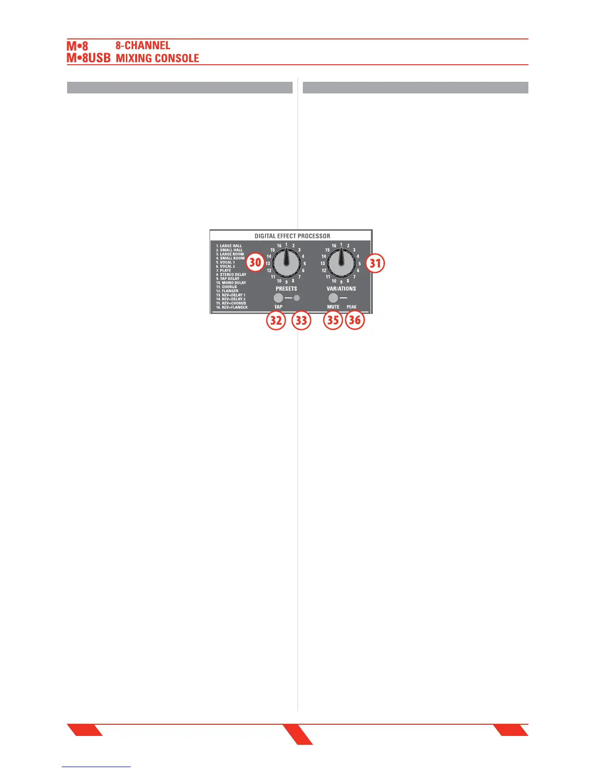 9. TAP DELAY - Typical mono delay with time set by the user TAP button