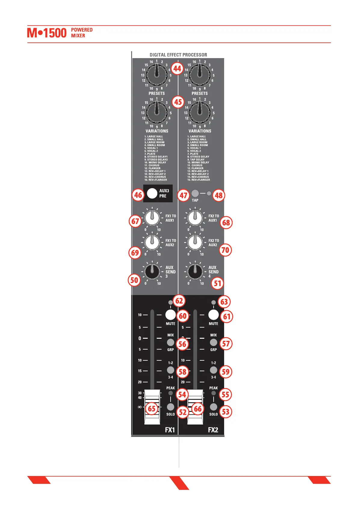 AUX1, FX1 TO AUX2 e FX1 FADER, per evitare