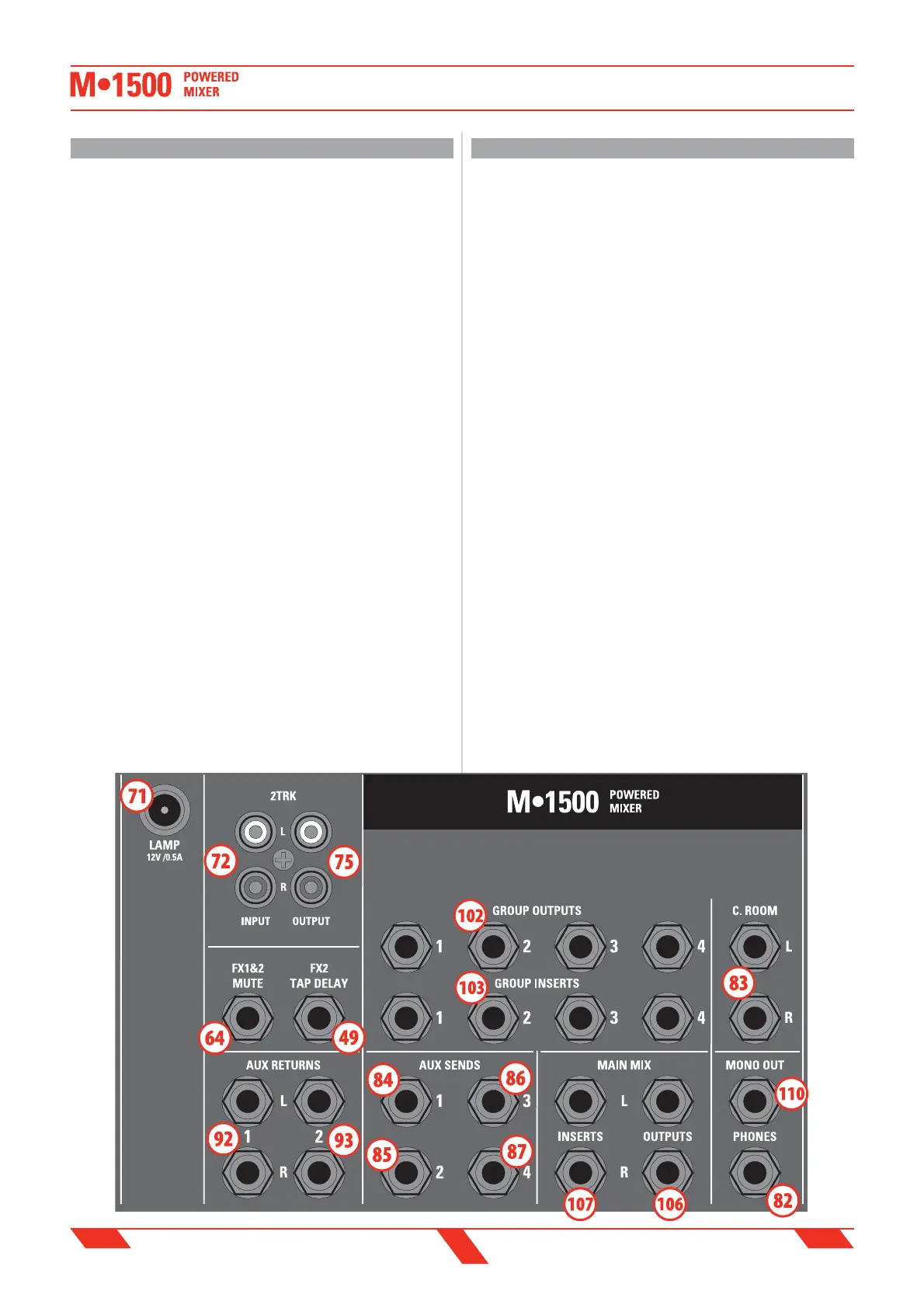 Push in this switch to send the GROUP 1-2 bus signal to C.ROOM and