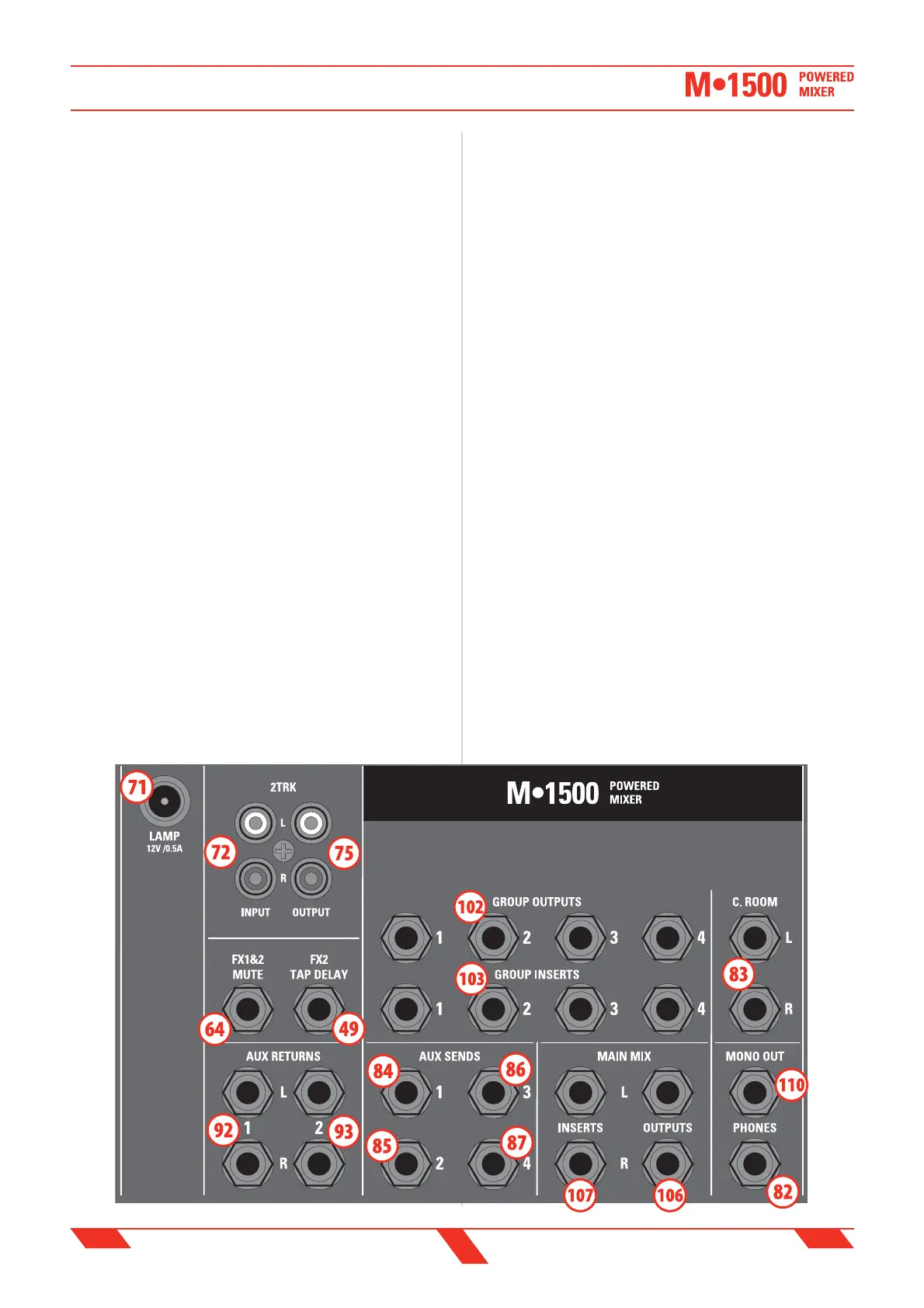 102. GROUP 1 / 2 / 3 / 4 jack outputs (balanced)