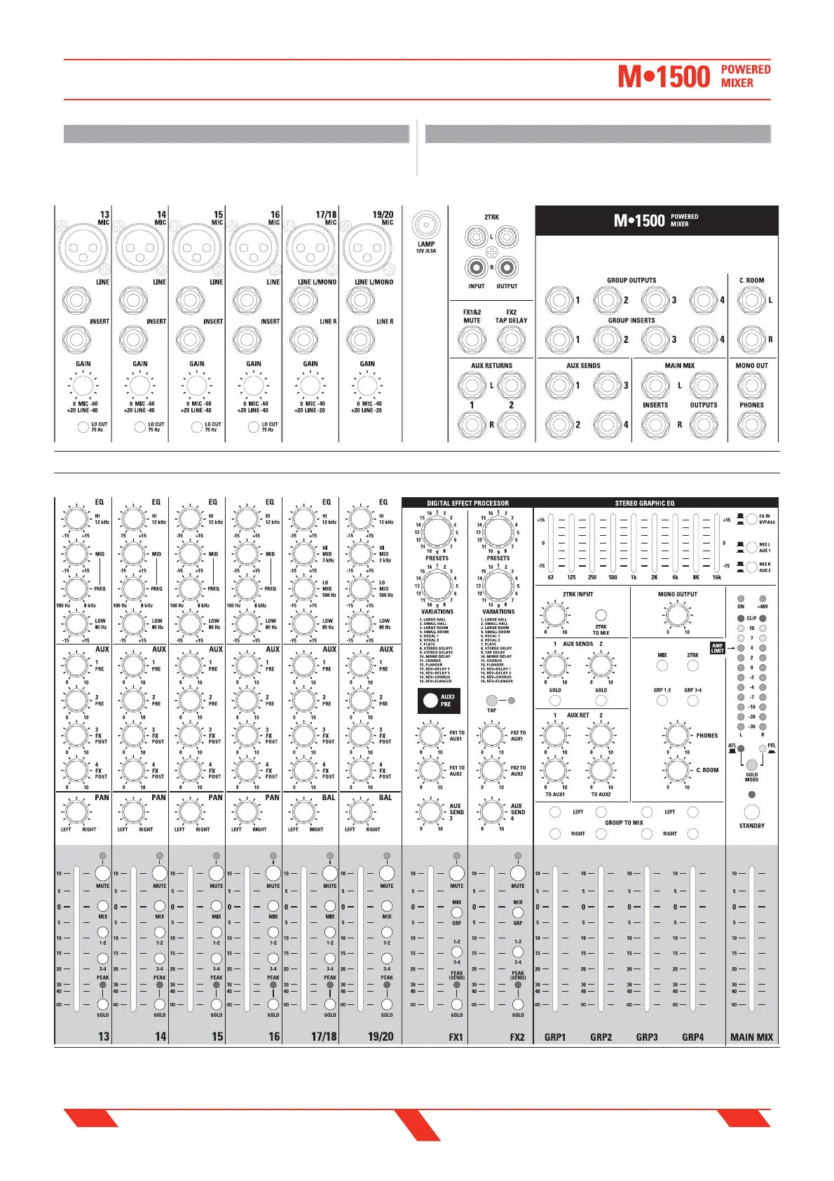 PROEL M1500 - TRACK SHEET (Stereo Channels 9-16 and Master Section); FOGLIO TRACCIA (Canali Stereo 9-16 E Sezione Master)