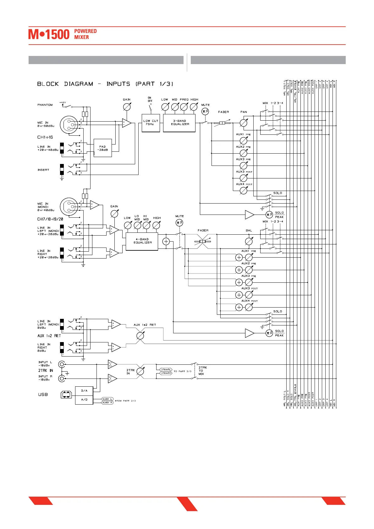 PROEL M1500 - Block Diagram (Inputs Part 1 of 3); Diagramma a Blocchi (Ingressi Parte 1 DI 3)