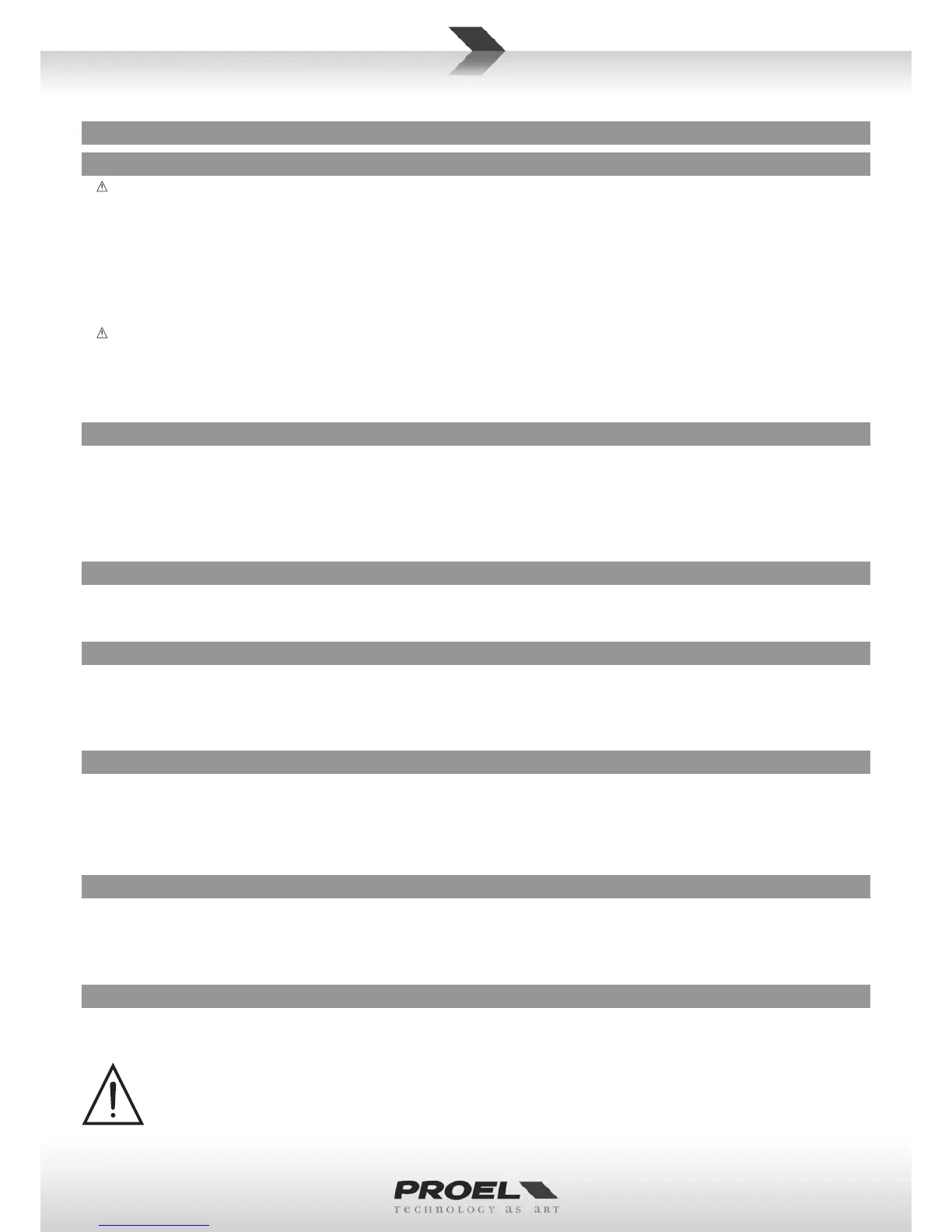 • Non intervenire sul prodo o. Rivolgersi a un centro di assistenza autorizzato Proel.