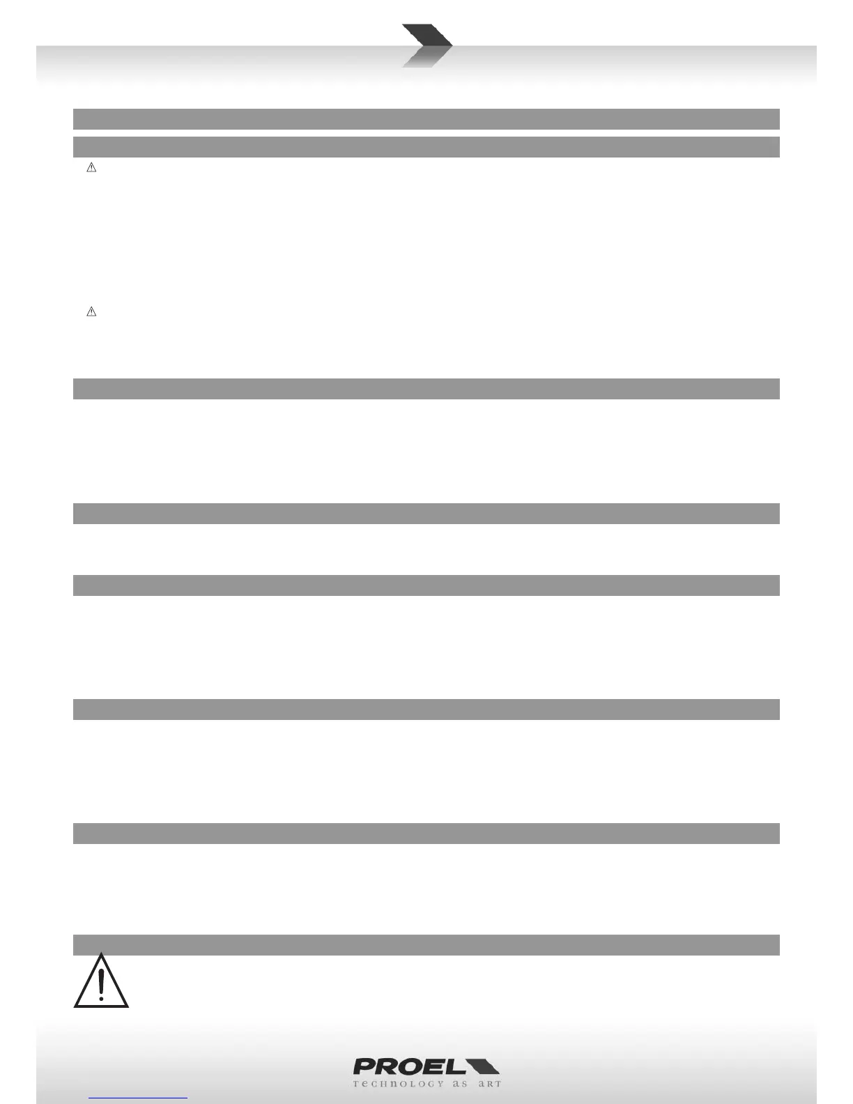 • Nicht versuchen, das Gerät selbst zu reparieren. Bi e wenden Sie sich an eine offi zielle Proel-Kundendienststelle.