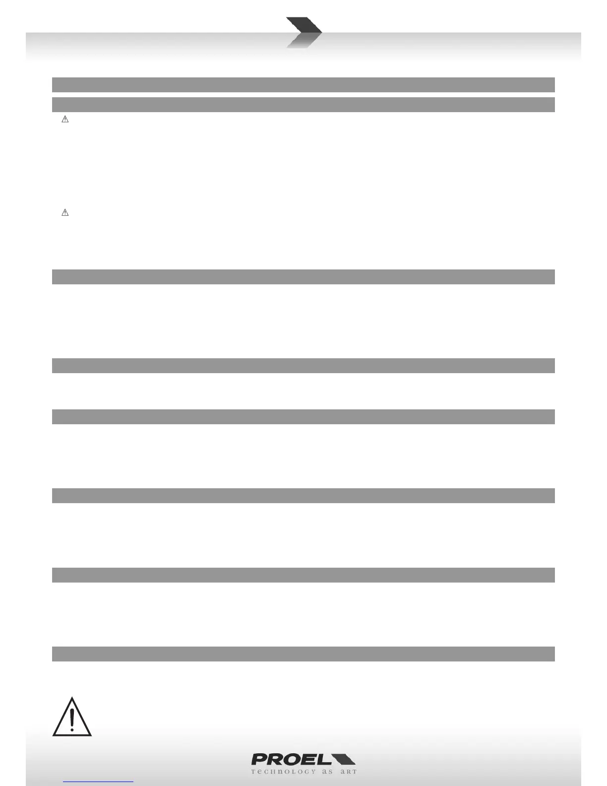 • Les appareils Proel sont pourvus de la garan e de fonc onnement et de conformité à ses spécifi ca ons, comme déclarées par le fabricant.